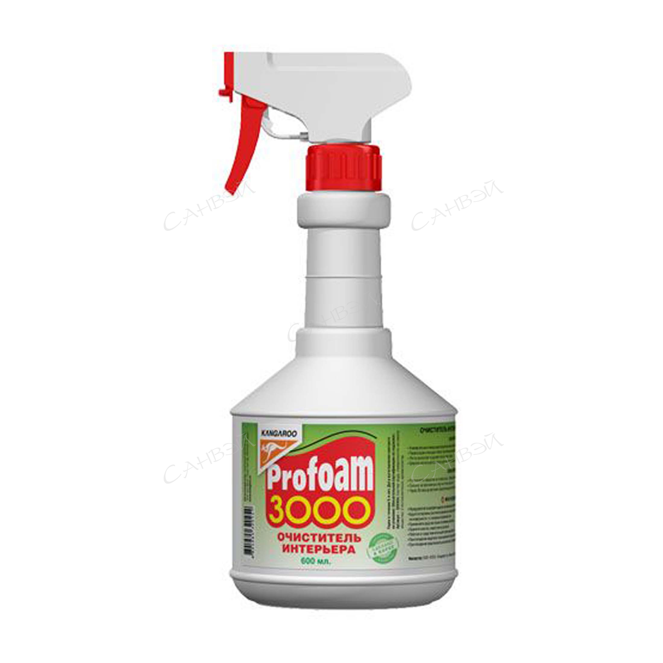 Очиститель интерьера Kangaroo Profoam 3000 - это универсальное очищающее средство для ткани, велюра, ковровых покрытий. Превосходно очищает любые пластиковые поверхности. Легко разлагает и удаляет пятна жира и грязи. Широко используется в быту для чистки мебели и ковров, а также для чистки автомобильных сидений. Обладает приятным запахом.