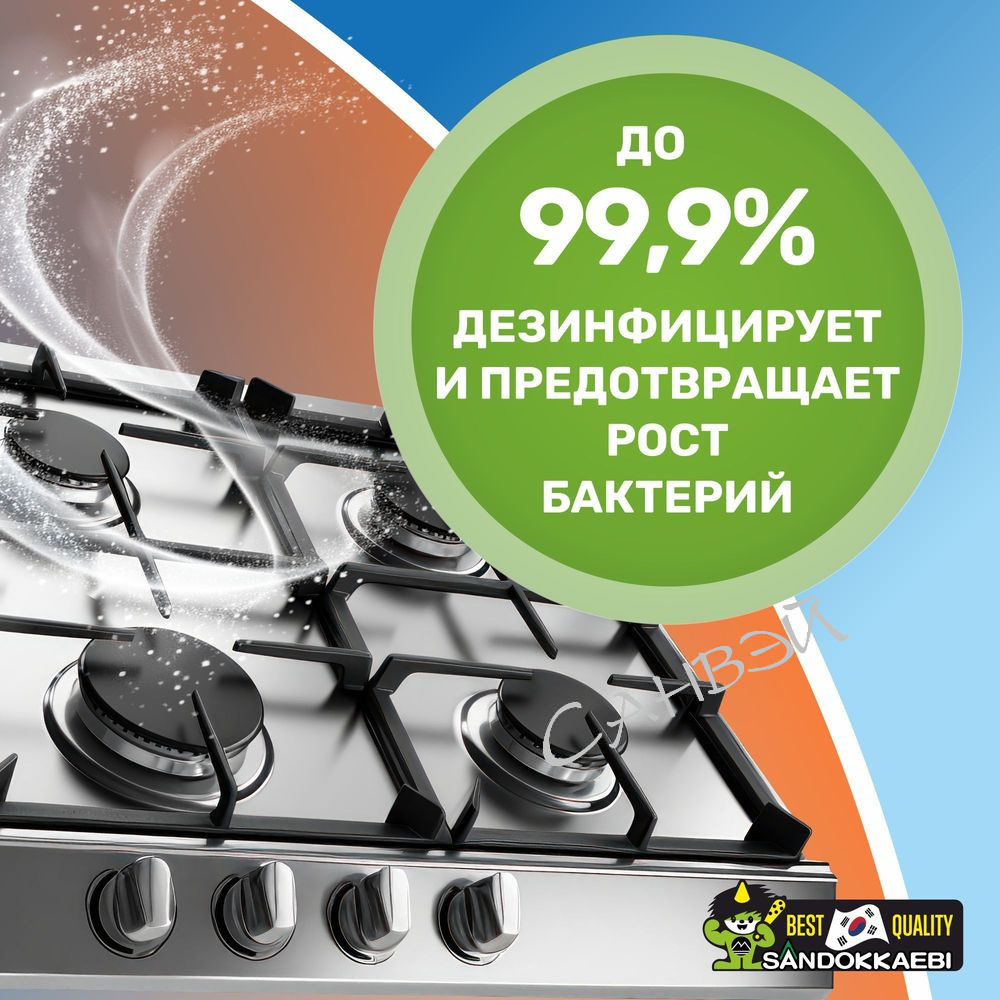 Чистящий спрей для кухни Sandokkaebi 300 мл эффективно удаляет въевшиеся пятна с поверхностей. Средство дезинфицирует и предотвращает рост бактерий. Спрей подходит для лёгкой ежедневной уборки, не оставляет разводов. Распылитель позволяет равномерно нанести средство на поверхность. В составе средства нет хлора.