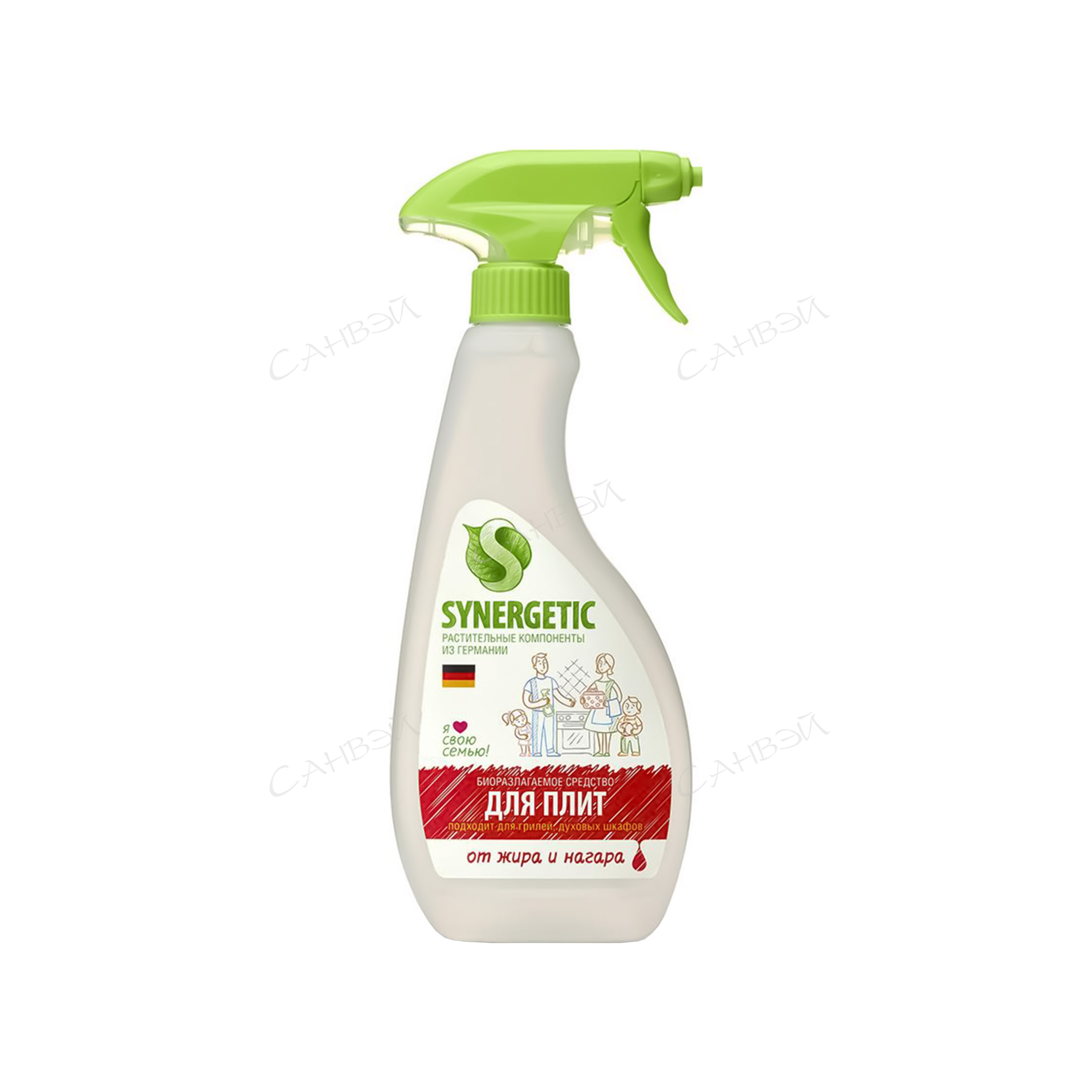 Биоразлагаемое средство для плит Synergetic — высокоэффективное щелочное средство для удаления жира, нагара и копоти с плит и других кухонных поверхностей. Комплекс биоразлагаемых растительных тензидов и соды справляется с органическими загрязнениями за считанные минуты! Кальцинированная сода создает необходимую для расщепления пятен щелочную среду и растворяет масложировые компоненты загрязнений. Подходит для: металлических, стеклокерамических, эмалированных плит; сковородок; противней; кастрюль; шампуров; решёток-гриль; пароконвектоматов; микроволновых печей; духовых шкафов; каменных столешниц; керамической плитки. Концентрированное средство для плит безопасно для септических установок. Попадая в среду септика, оно «понятно» для микроорганизмов и без труда распадается на простые соединения.