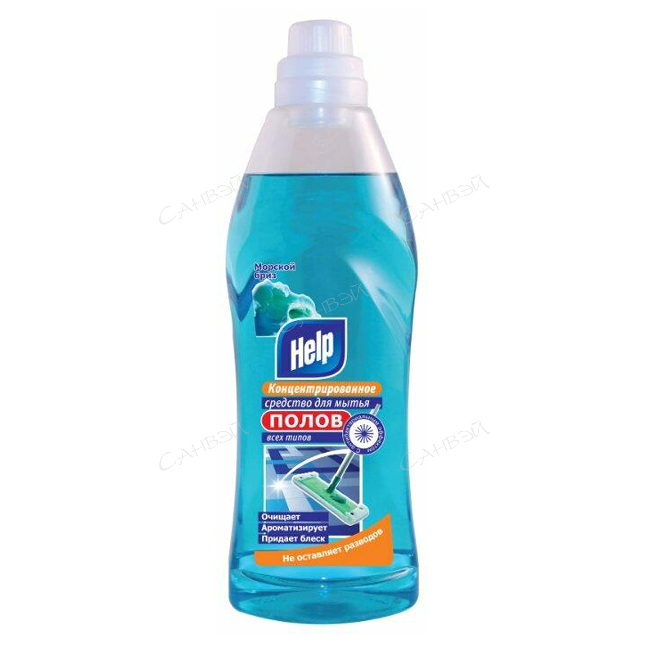 Help Концентрат для мытья полов Морской бриз 1000 мл предназначен для ухода за полами различного типа: паркета, ламината, линолеума, кафеля. Состав способен эффективно удалять разнообразные загрязнения, не наносит вреда поверхности, не оставляет разводов или подтеков. Не требует смывания. При использовании для мытья паркета обязательно разбавлять. Концентрированная формула обеспечивает экономичный расход.