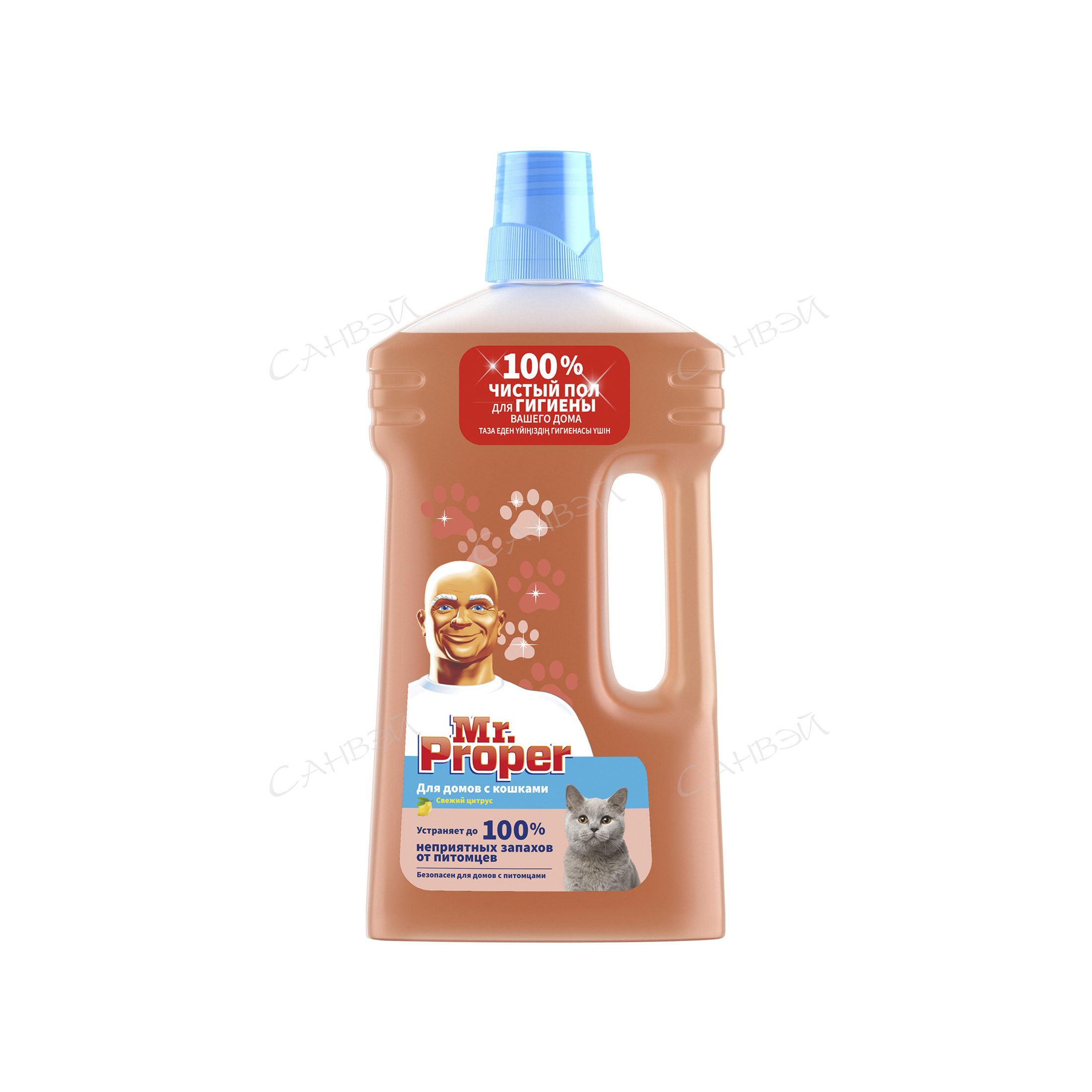 Mr. Proper Средство для мытья полов и стен для домов с кошками Свежий цитрус 1 л - это универсальное средство для уборки Mr. Proper поможет справиться с загрязнениями дома. Моющая жидкость легко удаляет загрязнения с ламината, деревянного паркета, кафельной плитки и других твердых поверхностей. Продукт можно применять в домах, оборудованных септик-системами, безопасно для септика.