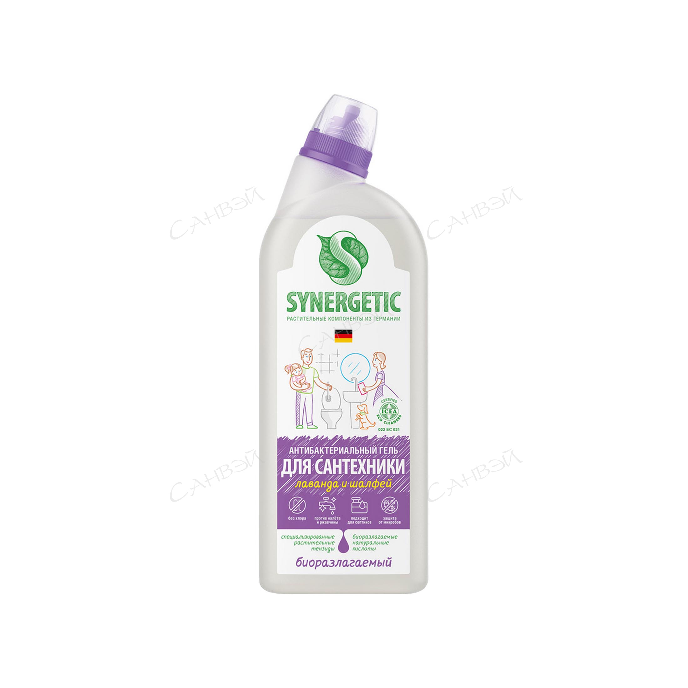 Комплекс биоразлагаемых кислот бережно и эффективно очищает от известкового налета, ржавчины и мочевого камня. Обеспечивает антибактериальный эффект и ароматизацию ванной комнаты — за счёт комплекса натуральных эфирных масел лаванды, лавандина, бергамота, муската и шалфея. Не содержит хлор, фосфаты, SLS, SLES, агрессивные ПАВ и кислоты. Убивает микробы и бактерии. Гипоаллергенный аромат, 100% смываемость. Эффективно устраняет запахи Удаляет загрязнения даже в ледяной воде.