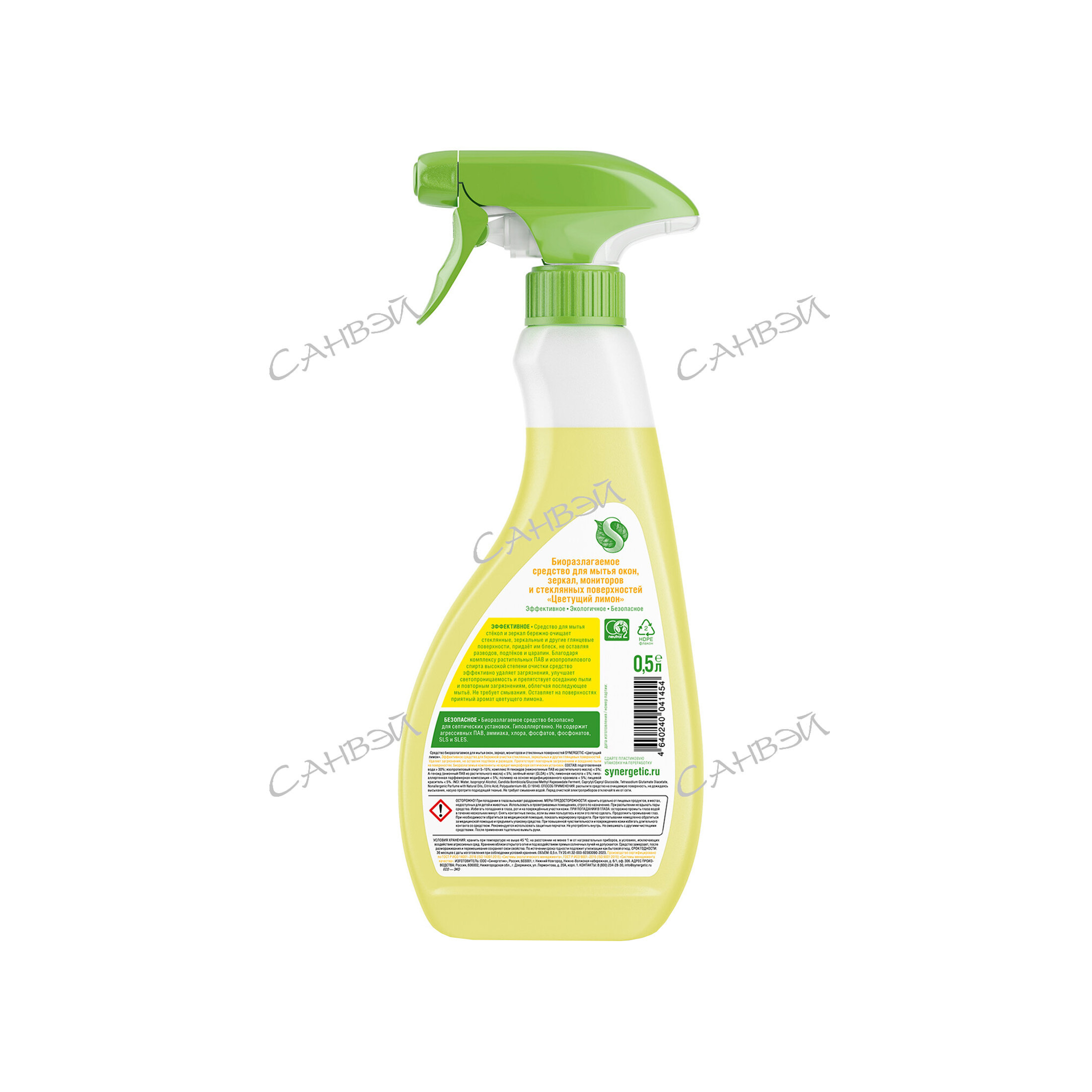 Средство биоразлагаемое для мытья окон, зеркал, мониторов и стеклянных поверхностей SYNERGETIC "Цветущий лимон", 0,5 л из магазина Санвэй - эффективное средство для бережной очистки стеклянных, зеркальных и других глянцевых поверхностей.