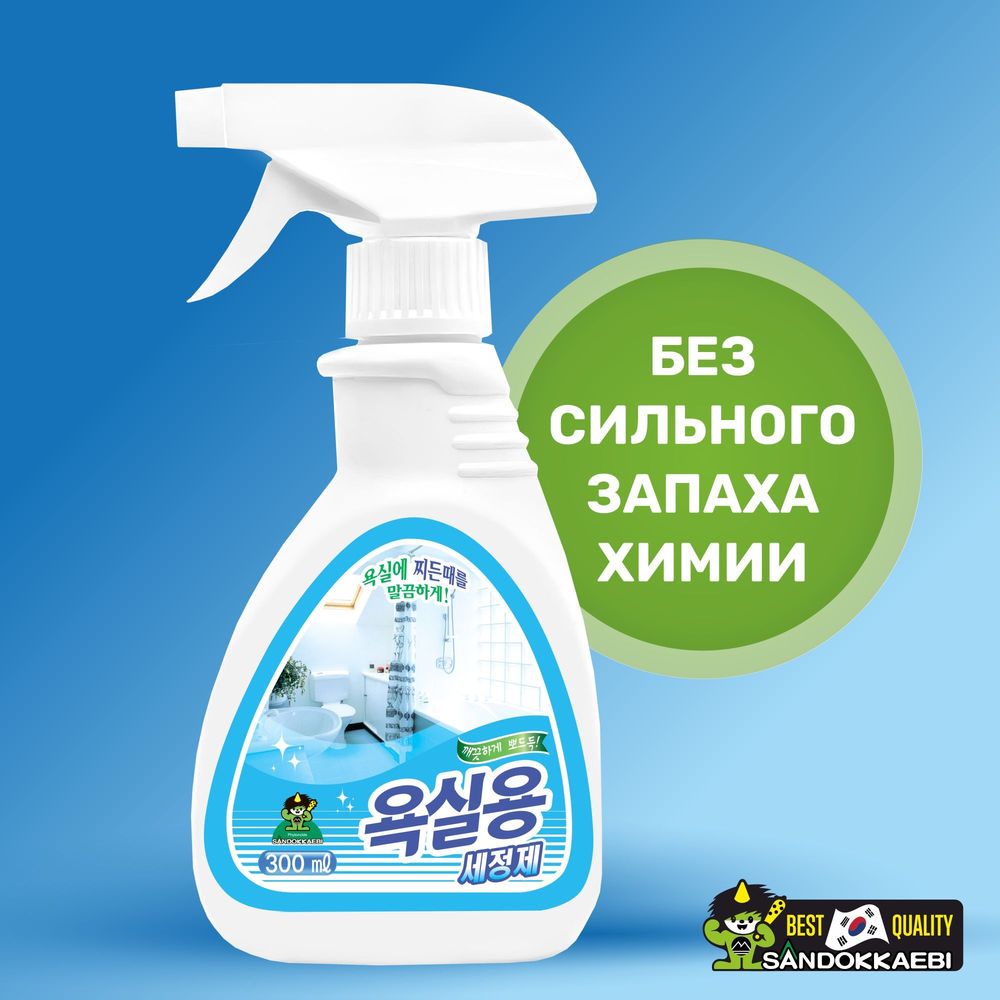 Чистящий спрей для ванной Sandokkaebi 300 мл эффективно удаляет въевшиеся пятна с поверхностей, борется с ржавчиной и налётом. Средство дезинфицирует и предотвращает рост бактерий. Спрей подходит для лёгкой ежедневной уборки, не оставляет разводов. Распылитель позволяет равномерно нанести средство на поверхность. В составе средства нет хлора.