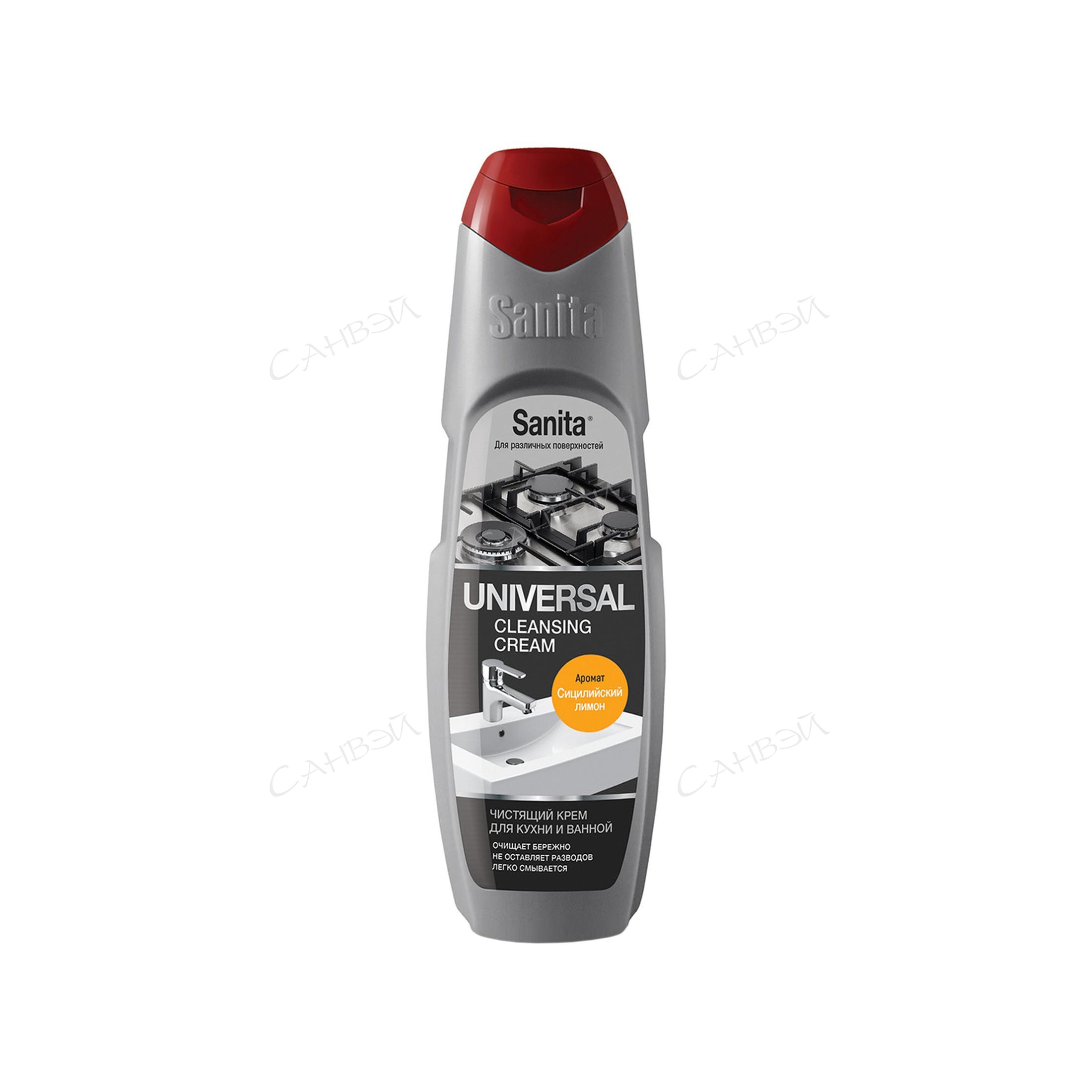 Чистящее универсальное средство Sanita Универсал, сила лимона для очистки кухонных поверхностей и ванной комнаты содержит особые микрогранулы и природные компоненты, которые эффективно справляются с жиром, грязью, нагаром и известковым налетом. Средство бережно очищает поверхности, легко смывается, не оставляет разводов после высыхания и дарит аромат свежего лимона. Рекомендовано для ежедневного применения.