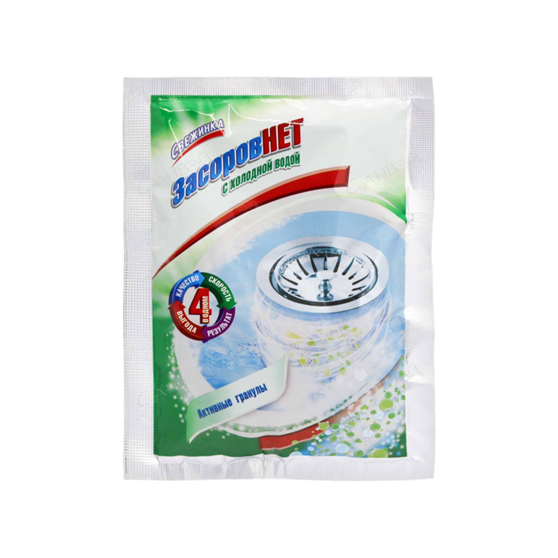 Свежинка Средство от засоров Засоров Нет с холодной водой 70 г — это высокоэффективное средство для прочистки сложных засоров в любых видах сантехнических труб. Содержит на 30 % больше активатора для усиления эффективности средства. Благодаря более высокому содержанию активатора (гранулы алюминия) быстрее растворяет остатки пищи, жир , волосы и шерсть устраняет неприятный запахи. Средство обладает приятным ароматом и окрашено в цвет холодной воды.