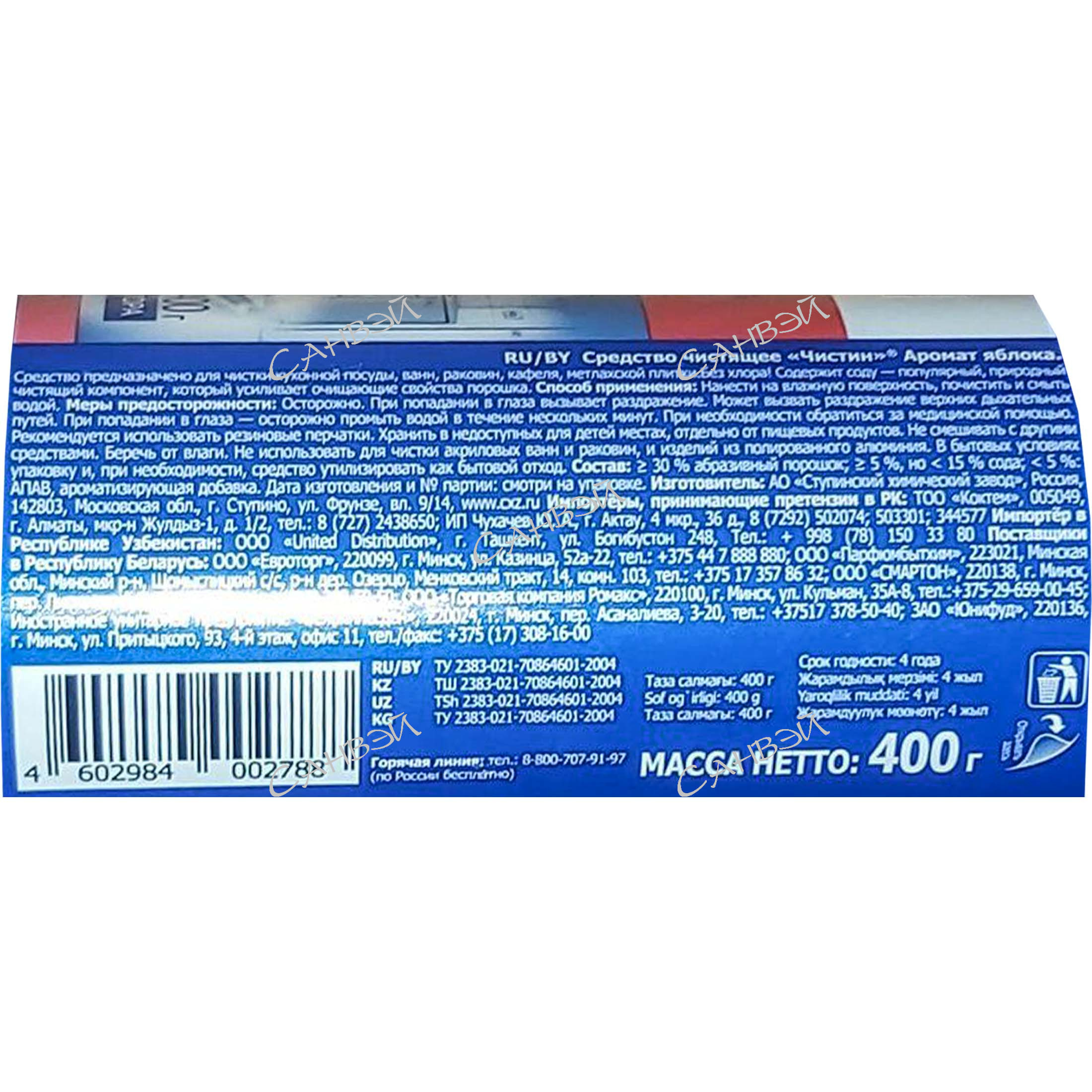 Чистин порошок универсальный д/чистки 400гр. яблоко туба 1шт / 20шт / 24228 / 002788