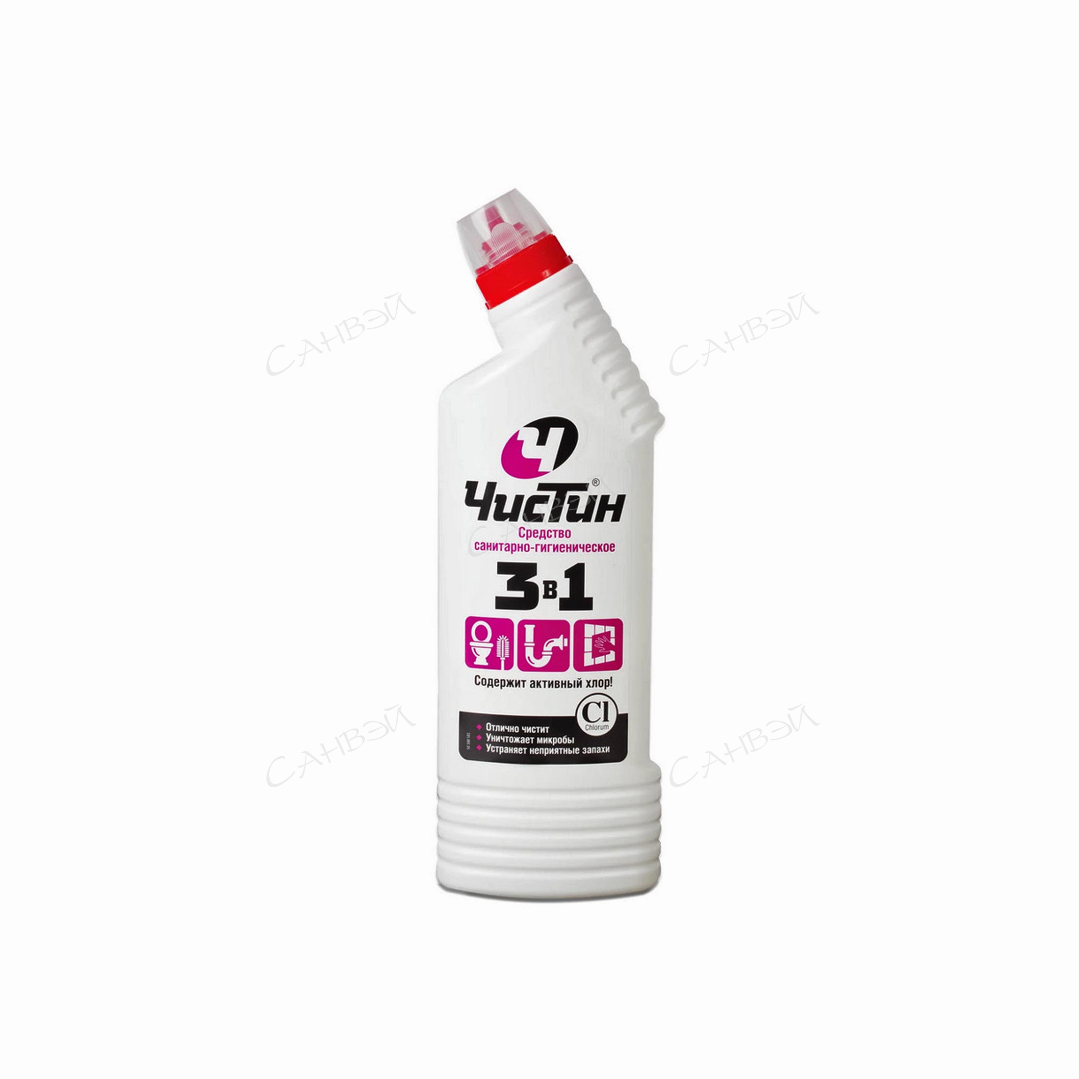 Чистин Средство санитарно-гигиеническое 3в1 750 г уничтожает микробы, грибок, неприятные запахи. Предназначено для чистки и антимикробной обработки раковин, ванн, душевых кабин, унитазов, профилактики засоров, канализационных стоков, мытья керамической плитки, кухонных плит, любых твердых моющихся напольных покрытий, настенных панелей, моющихся обоев, бытовой техники.
