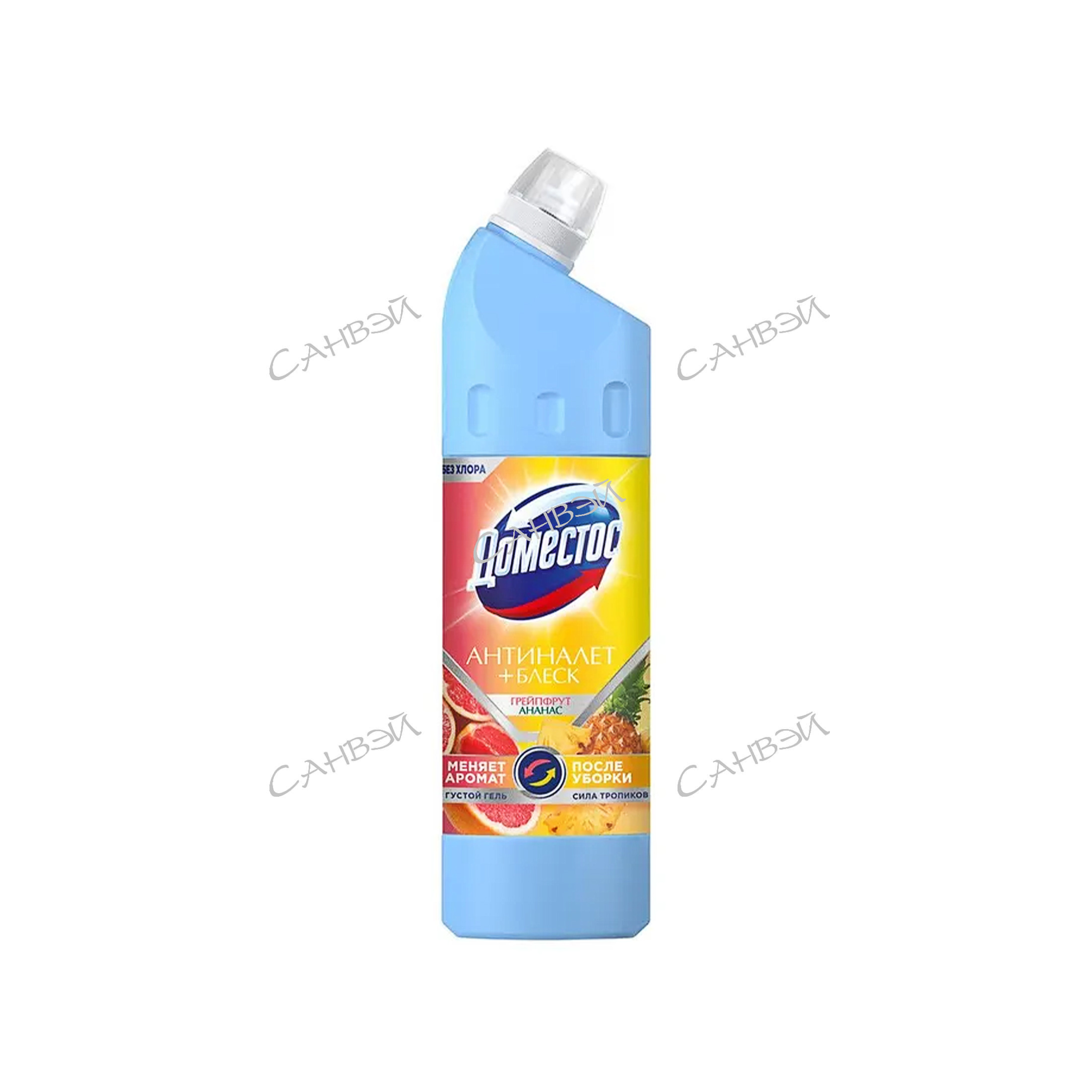 Доместос Гель для чистки универсальный Антиналет+блеск Сила тропиков 750 мл - незаменимый помощник в мире бытовой химии, который сочетает в себе мощную формулу и приятный аромат.