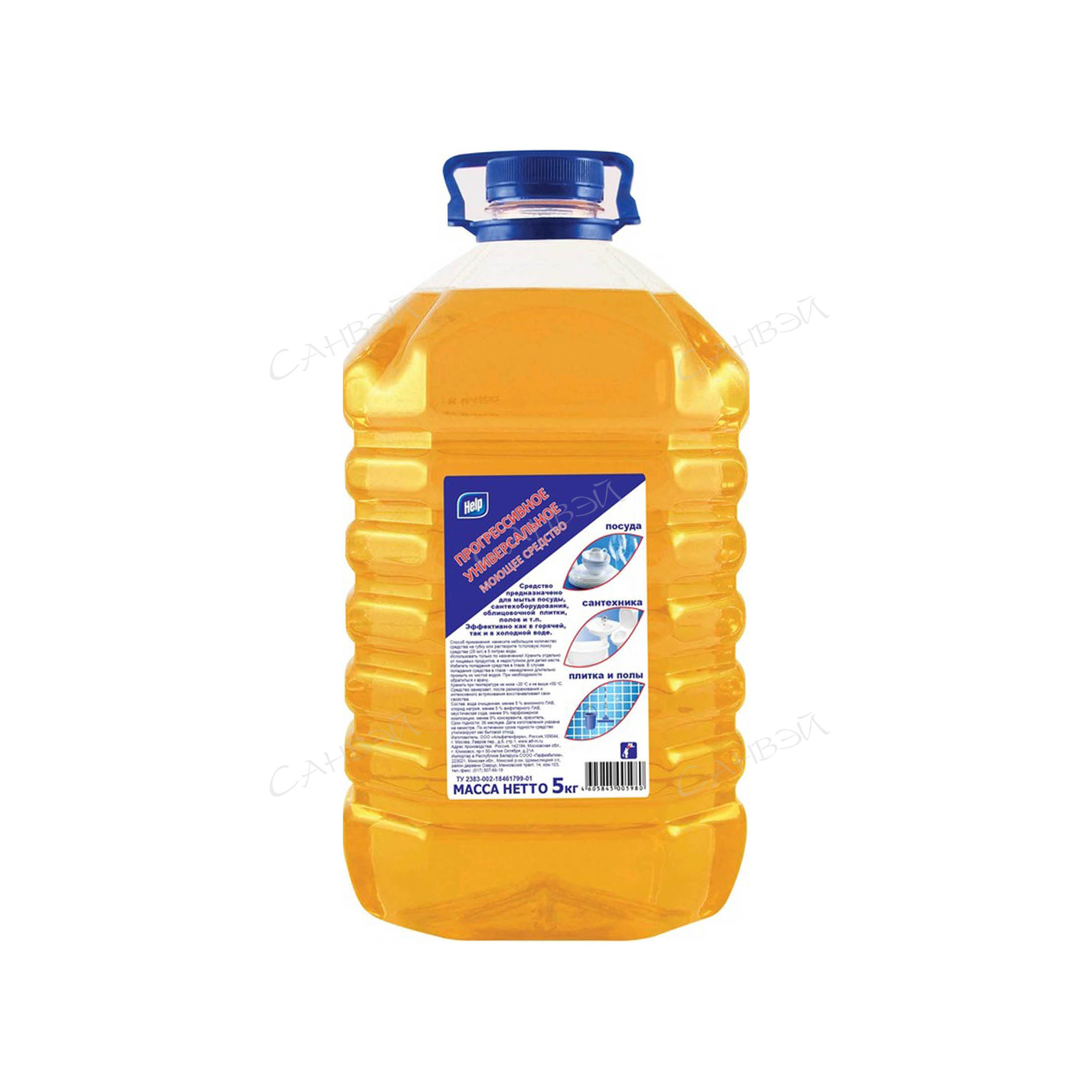 Help Чистящее средство Универсальное 5 л предназначено для мытья посуды, сантехоборудования, облицовочной плитки, полов и т.п. Эффективно как в горячей, так и в холодной воде. Применяется для мытья в быту, кафе, ресторанах, комбинатах общественного питания, лечебно-профилактических учебных и детских учреждениях.
