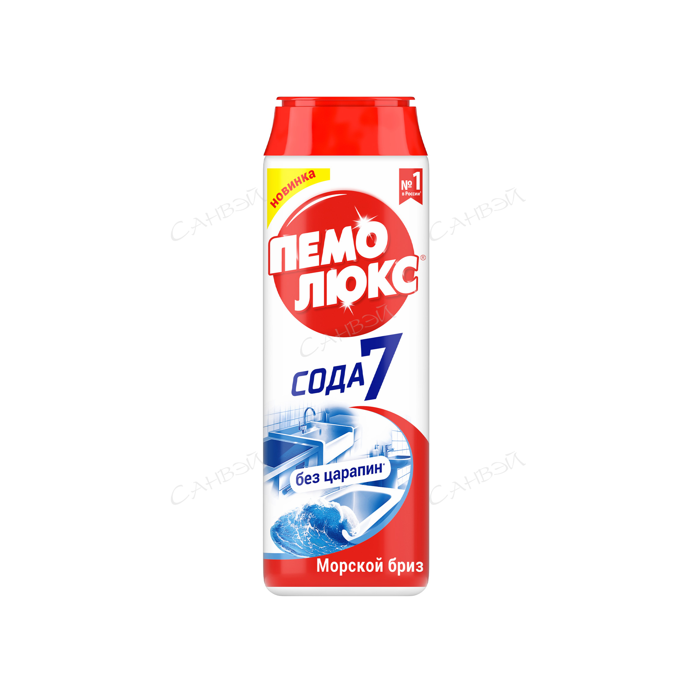 Пемолюкс Чистящий порошок Сода 7 Морской бриз 480 г содержит пять слагаемых эффективной и безопасной уборки: эффективность против жира и въевшейся грязи, универсальное использование по всему дому, бережное очищение разнообразных поверхностей, безопасное средство - без агрессивных химикатов (при надлежащем использовании), аромат чистоты и свежести. Мощная формула с содой и мягким абразивом не содержит опасных химикатов и подходит для чистки керамических, эмалированных, металлических и других твердых поверхностей на кухне, в ванной комнате и в прочих помещениях.