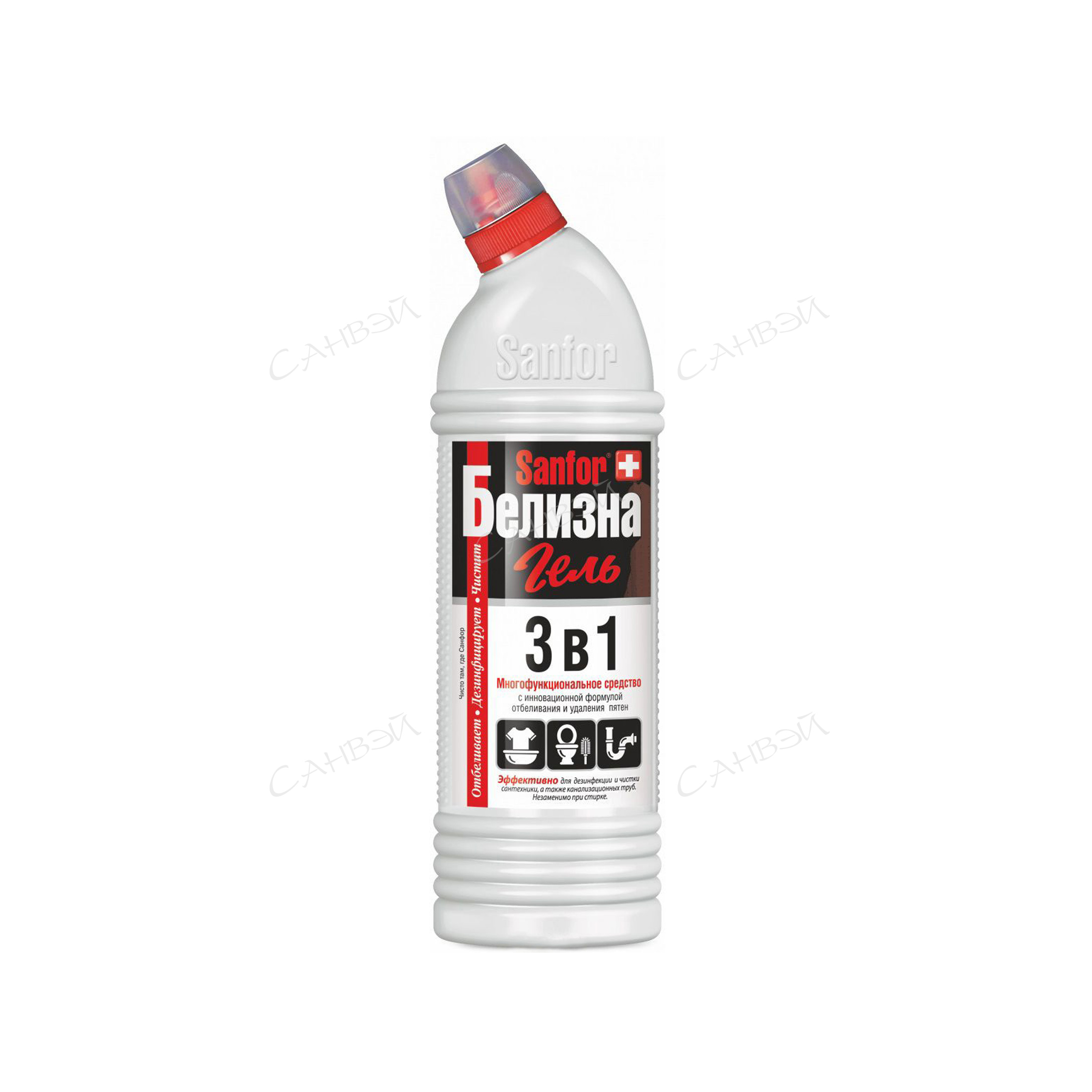 Средство с комплексным действием Санфор Белизна-гель 3в1 – специальное густое средство с инновационной формулой отбеливания и удаления пятен. Комплексное действие геля незаменимо при стирке, а также при дезинфекции и чистке сантехники и труб.
