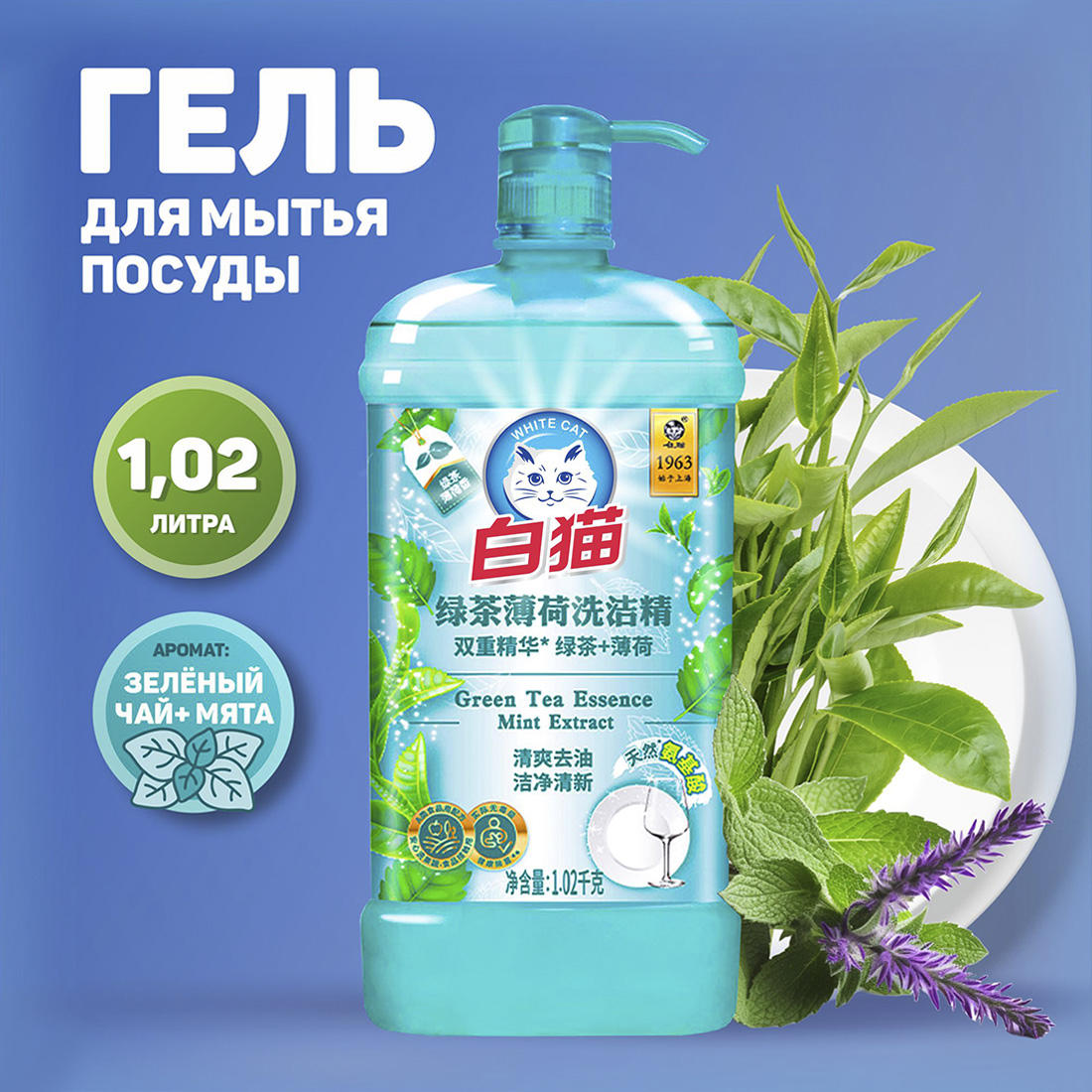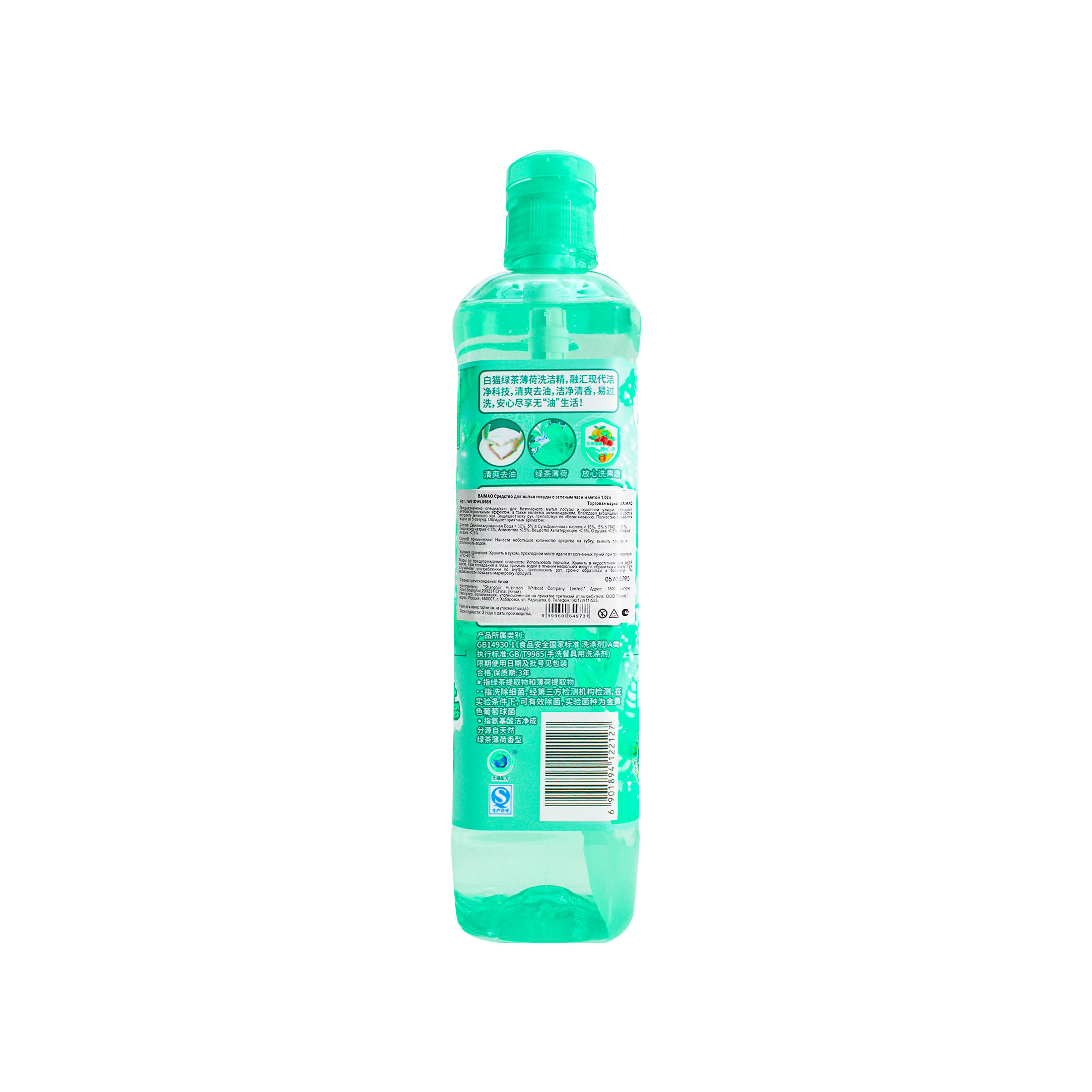 Baimao Средство для мытья посуды Зеленый чай и мята 1,02 л станет незаменимым помощником на кухне для любой хозяйки! Гель отлично пенится и смывает жир даже в холодной воде.
