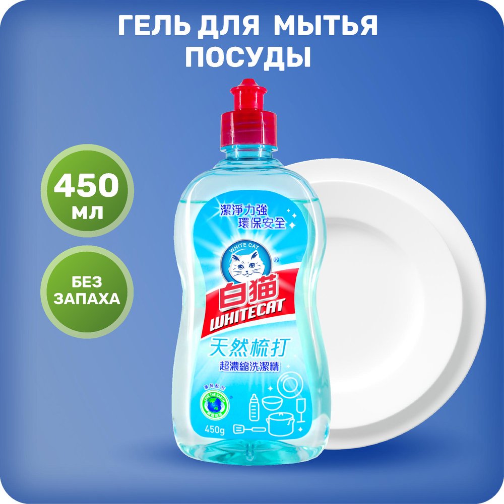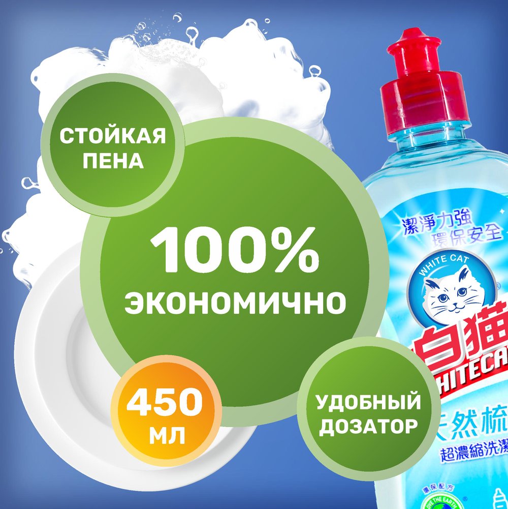Концентрированное средство для мытья посуды White Cat концентрат на основе натуральной соды 450 мл эффективно и быстро справляется с мытьем посуды. Густая и ароматная пена эффективно очищает посуду, легко смывается водой, не оставляя следов и разводов. Одной капли средства Вам будет достаточно для мыть большого количества посуды. Удобный дозатор позваляет минимизировать расход средства. Приятный аромат превратит мытье посуды в приятное удовольствие, а сода поможет отмыть даже самые сложные загрязнения. С заботой о чувствительной коже, соответствует стандарту ЕС с низким уровнем аллергенов. Средство полностью биоразлагаемо и не наносит вреда природным источникам воды.