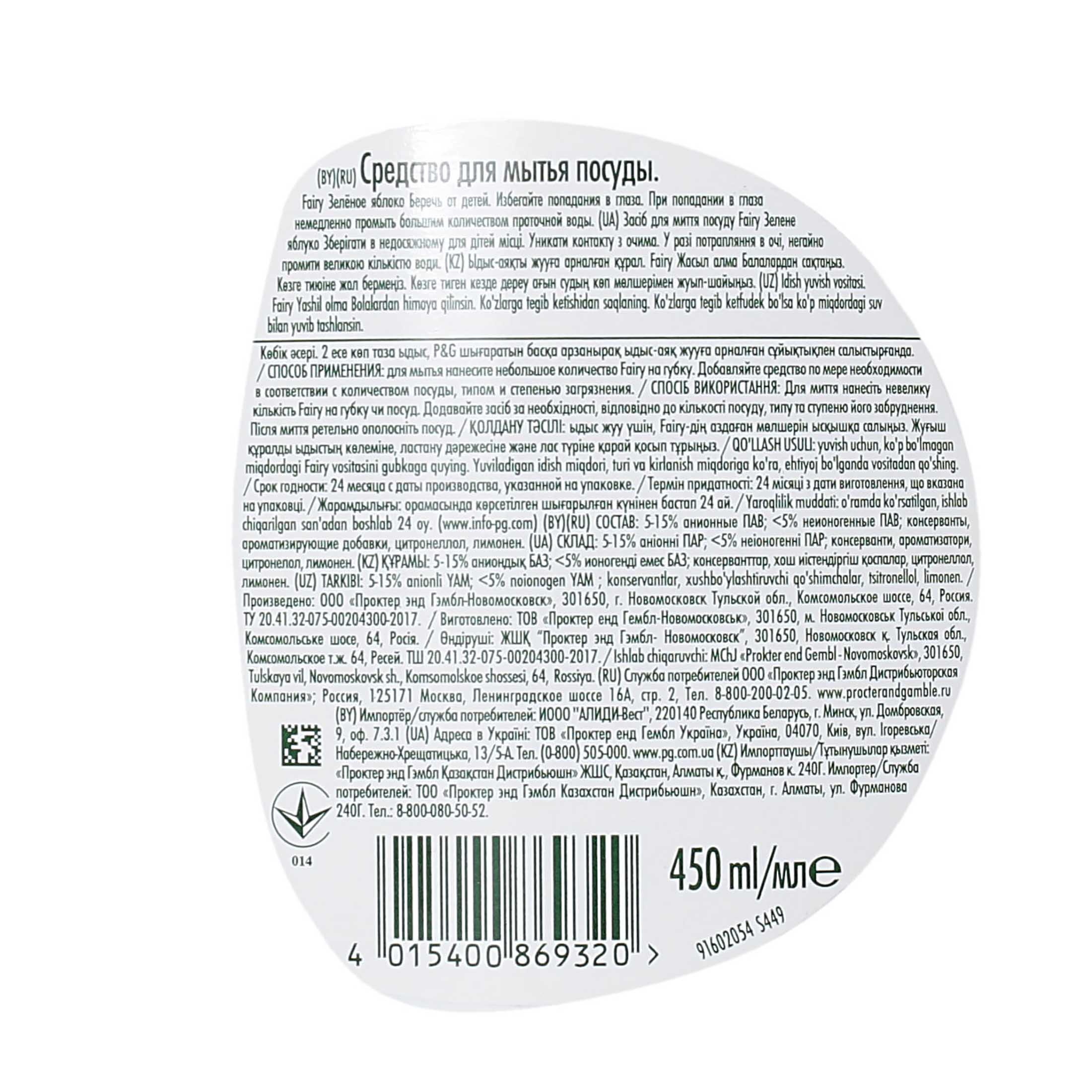 FAIRY гель д/мытья посуды 450мл бут/пл Зеленое яблоко / 21шт / 869320