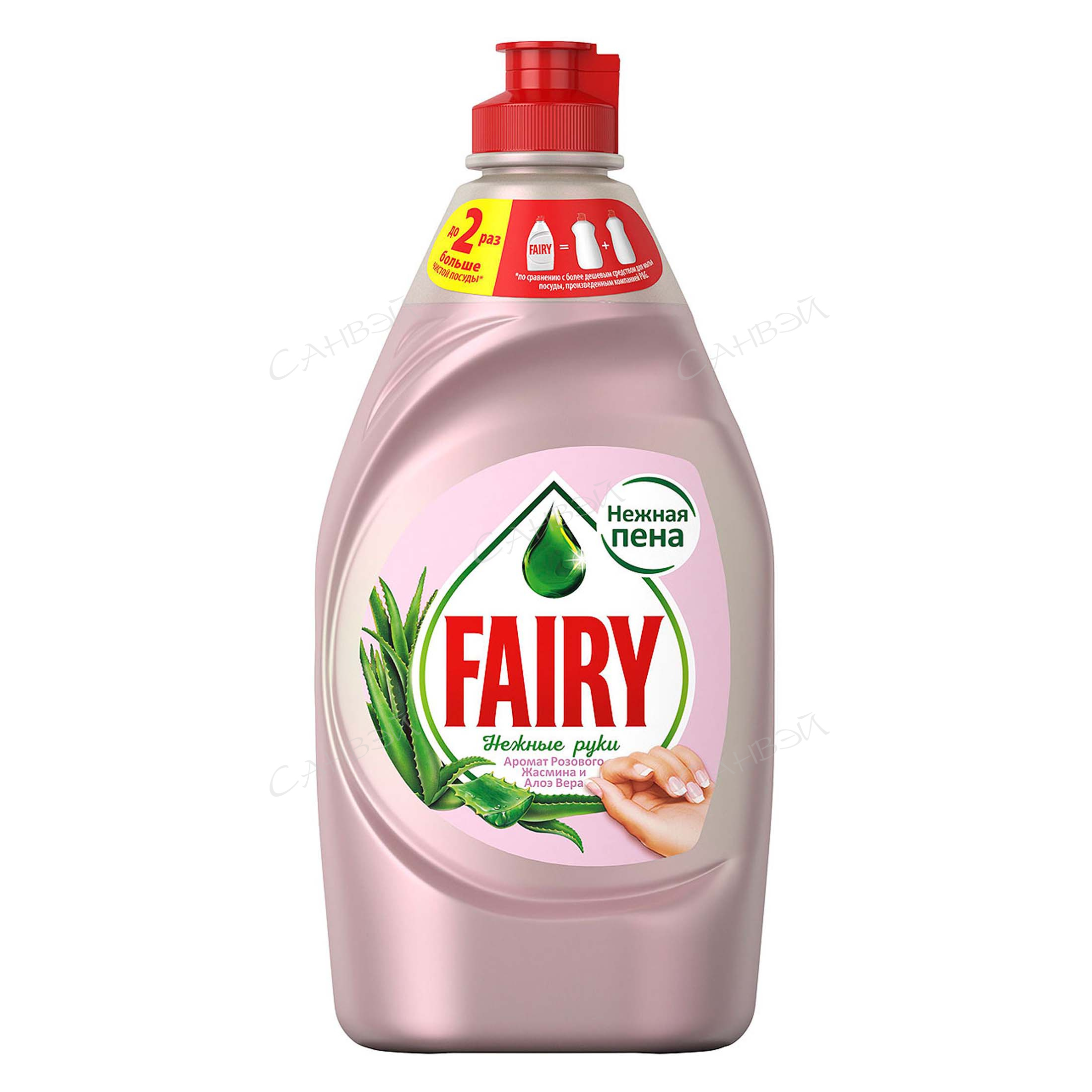 Fairy Средство для мытья посуды Нежные руки Розовый жасмин и алоэ вера 450 мл разработано совместно с дерматологами для сохранения нежности кожи Ваших рук. Концентрированная формула Fairy быстро расщепляет жир и обеспечивает идеальную чистоту посуды, в тоже время не провоцируя сухость кожи Ваших рук. Активные компоненты формулы настолько эффективны, что запросто растворяют жир даже в холодной воде.