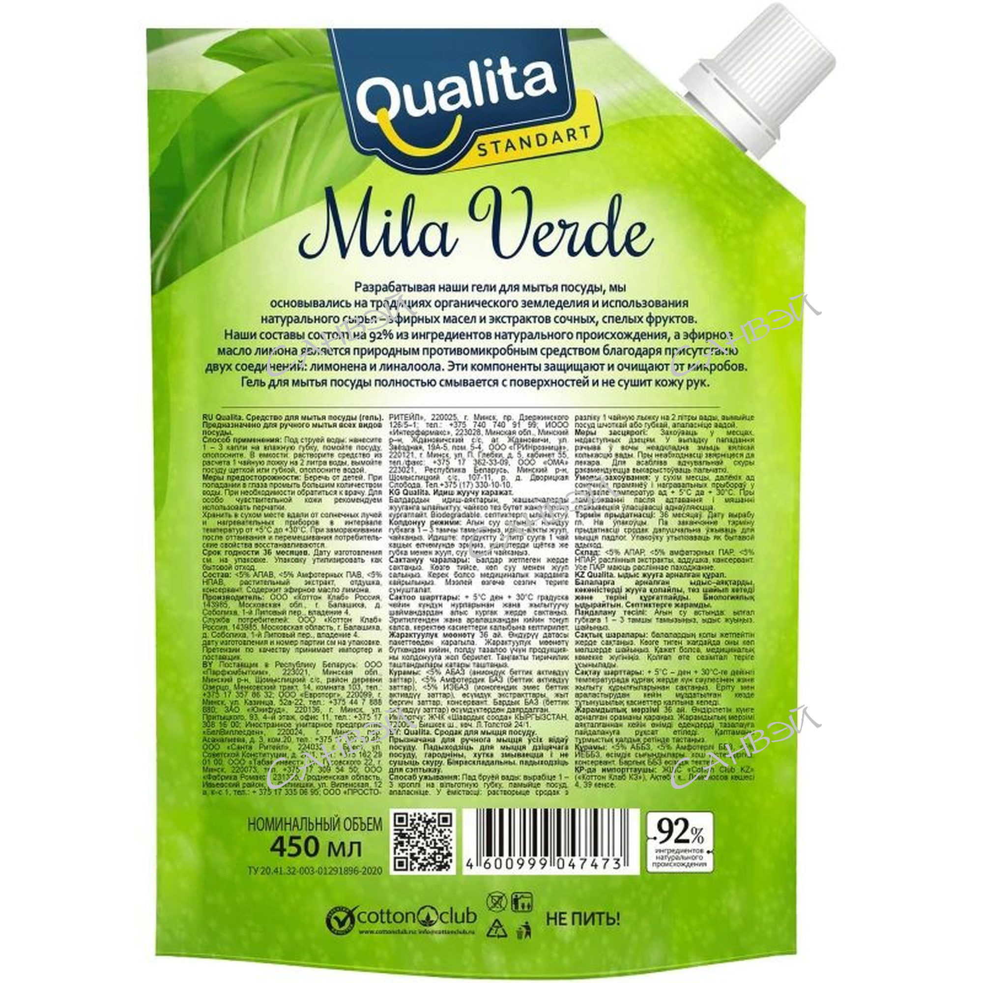 Qualita Mila Verde гель д/мытья посуды овощей,фрукт. 450мл зелен.яблоко дой-пак 1шт / 12шт / 12443 / 047473