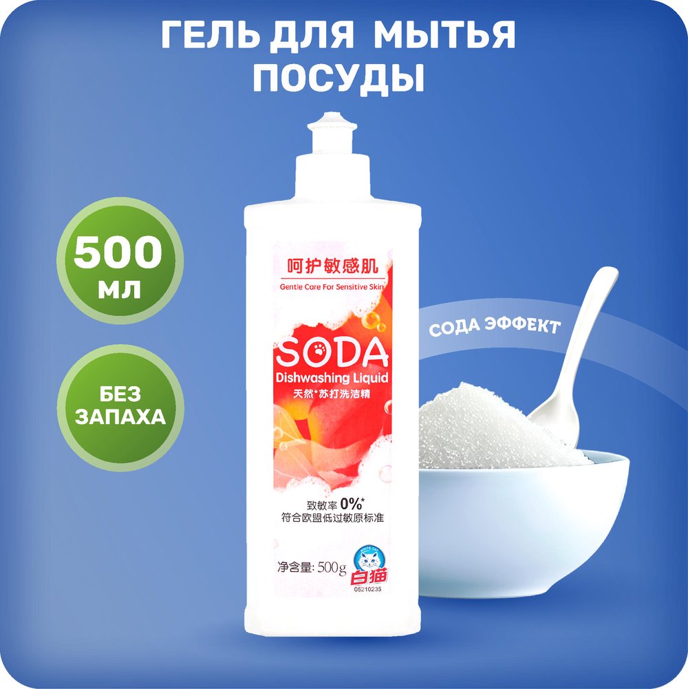 Средство для мытья посуды White Cat Soda 500 мл содержит натуральную соду и мягкие очищающие компоненты, которые легко удаляют жир даже в холодной воде. Средство устраняет неприятные запахи и очень экономично в использовании. Средство White Cat Soda разработано специально для заботы о чувствительной кожи рук и соответствует стандарту ЕС с низким уровнем аллергенов. Средство полностью биоразлагаемо и не наносит вреда природным источникам воды.