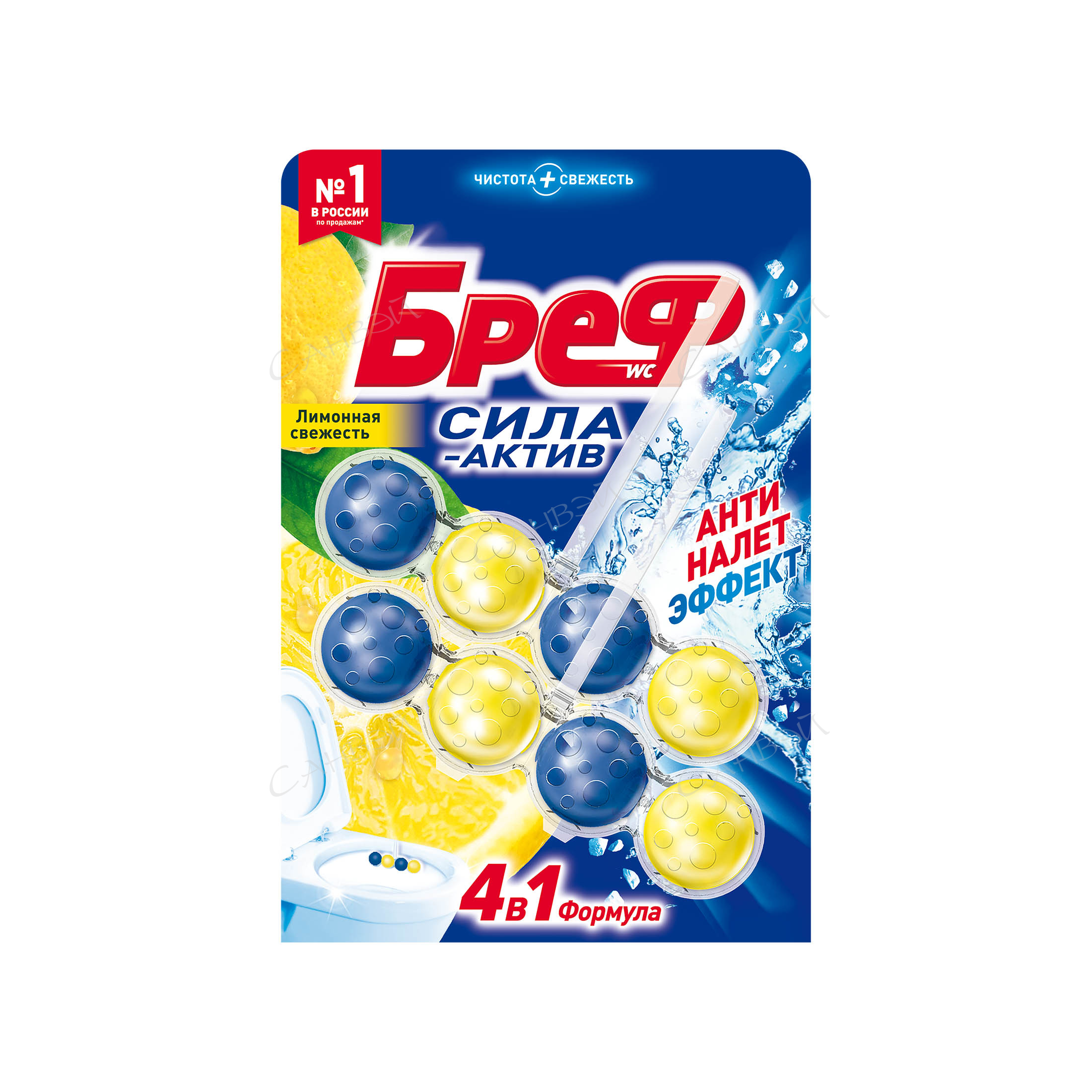 Бреф Сила-Актив Лимонная Свежесть 3х50 гр АНТИНАЛЕТ ЭФФЕКТ в магазине Санвэй — туалетный блок с формулой против известкового налета. Активная формула с антиналет эффектом действует в 4 направлениях: