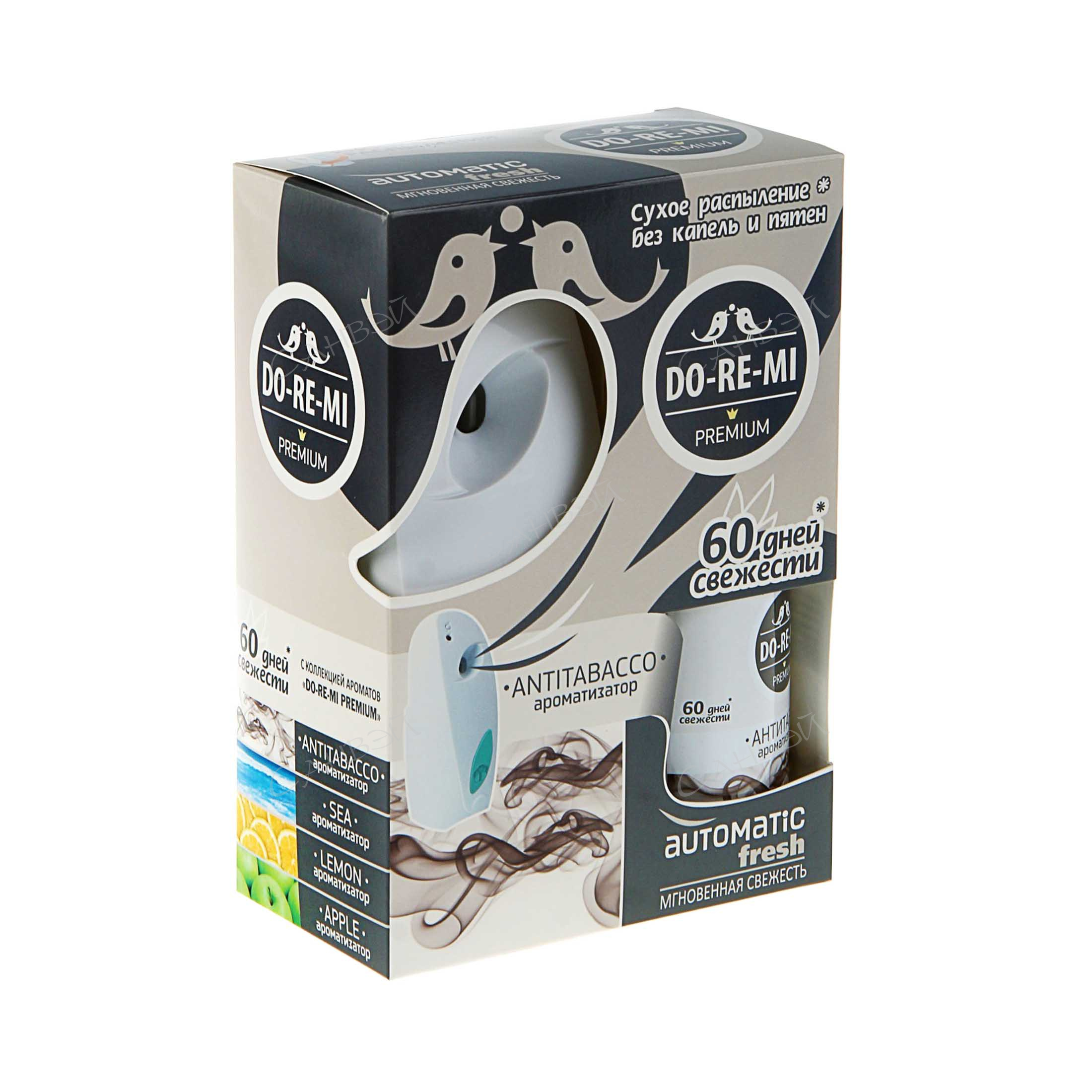 Освежитель воздуха Do-Re-Mi Premium Automatic состоит из диспенсера и универсального сменного баллона. Наполняет дом эффективным ароматом антитабака. Формула сухого распыления обеспечивает стойкий аромат и гарантирует отсутствие капель и пятен на полу, стенах и мебели. Хорошо увлажняет воздух и устраняет неприятные запахи. Диспенсер Do-Re-Mi Premium имеет три режима распыления: одно распыление в 7, 15 и 30 минут. Объем баллона составляет 250 мл.(до 60 дней распыления).