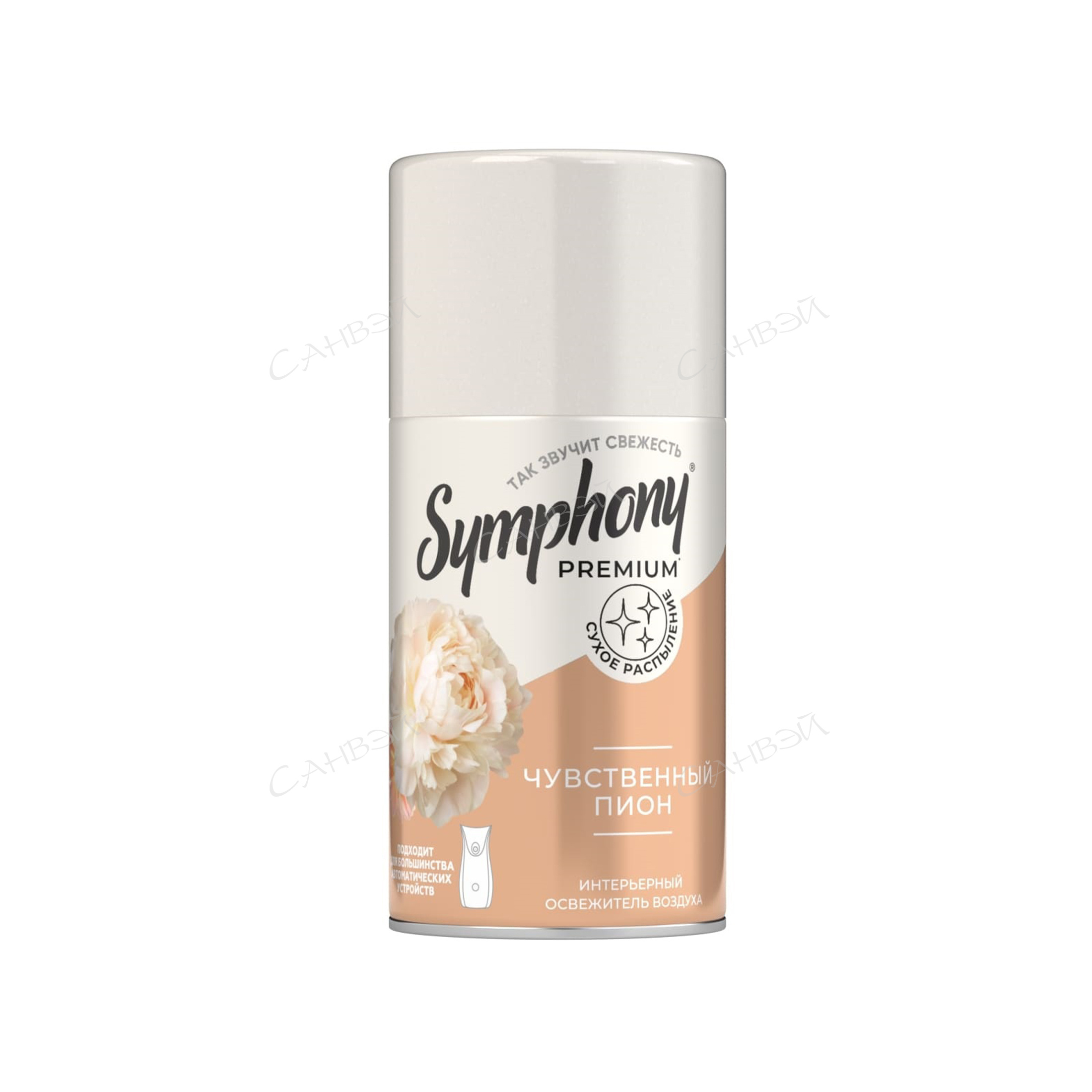 Symphony Сменный балон для автоматического освежителя Premium Чувственный пион 250 мл - лучшая возможность создать уют и придать индивидуальность Вашему дому. Содержит высококачественные эксклюзивные парфюмерные композиции. Изготавливаются с использованием натуральных компонентов. Быстро и эффективно устраняют неприятные запахи. Экономичны и удобны в использовании. Система сухого распыления не оставит пятен на поверхности.