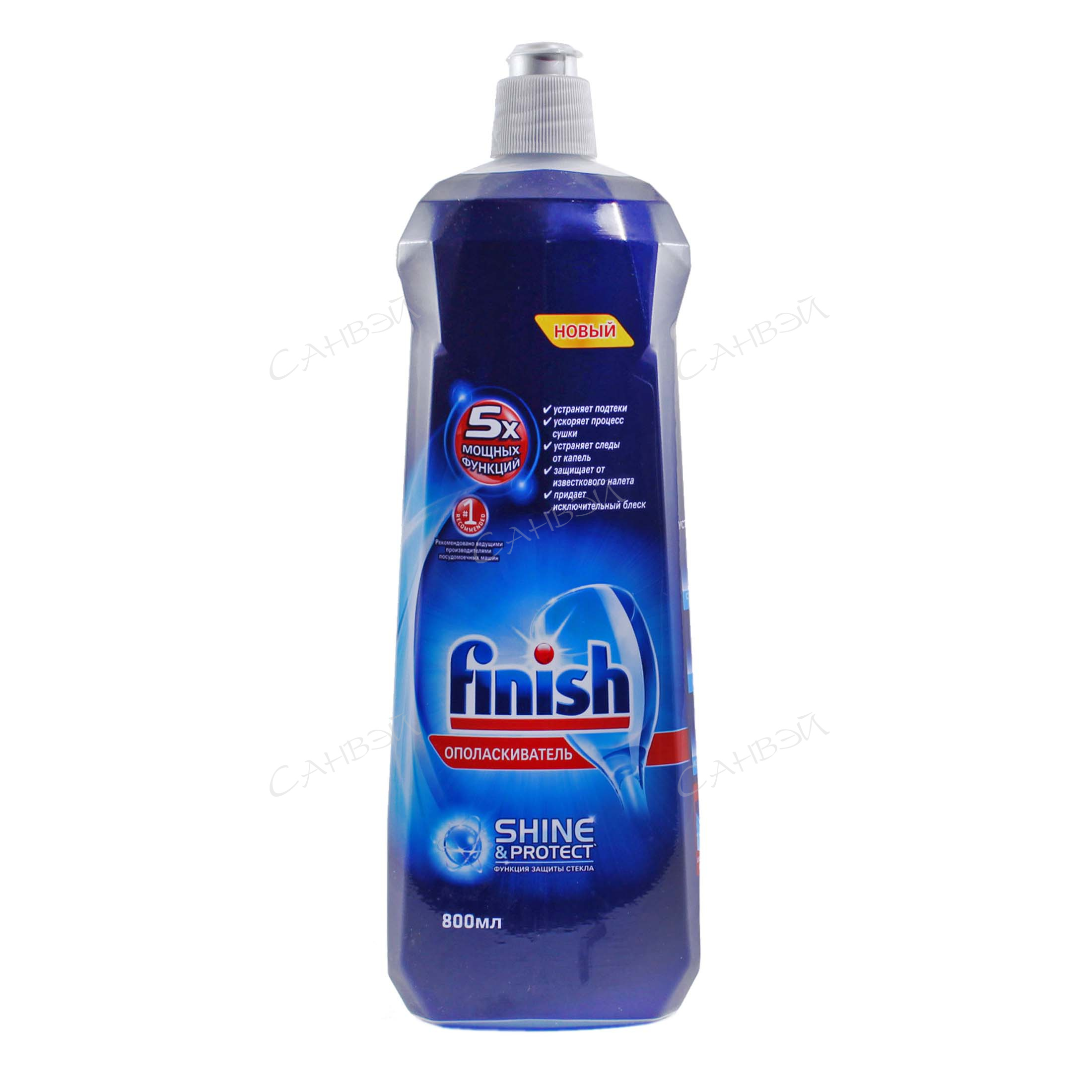 Ополаскиватель Finish - это защита от образования пленки и пятен (довольно частое явление, если использовать только порошок), с ним ваша посуда буквально сияет чистотой. Ополаскиватель Finish усиливает действие порошка и помогает начисто смыть пятна и жирную пленку, так что ваша посуда, бокалы и столовые приборы остаются идеально чистыми.