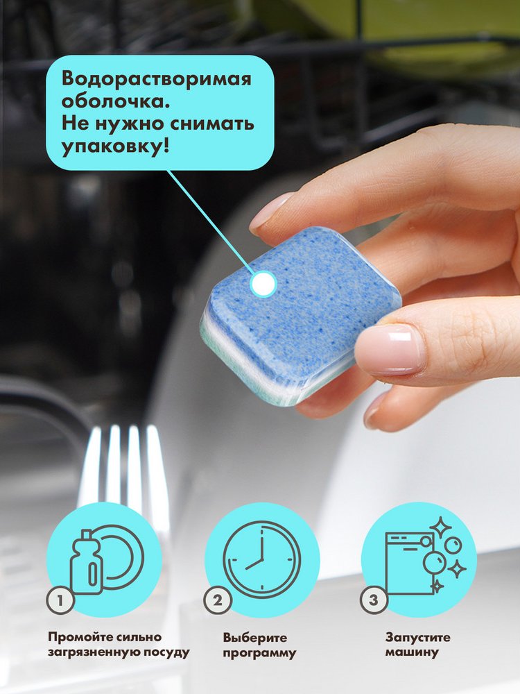 - Обратите внимание! Каждая таблетка находится в водорастворимой упаковке, нет необходимости удалять обертку. Не рекомендуется мыть в посудомоечной машине антикварный и расписной фарфор, хрусталь, изделия из декоративного стекла, предметы с ручками из кости, деревянную посуду и пластиковые изделия, которые не выдерживают температуру выше 70 °С, алюминиевые изделия и предметы с отделкой золотом или другими драгоценными металлами.