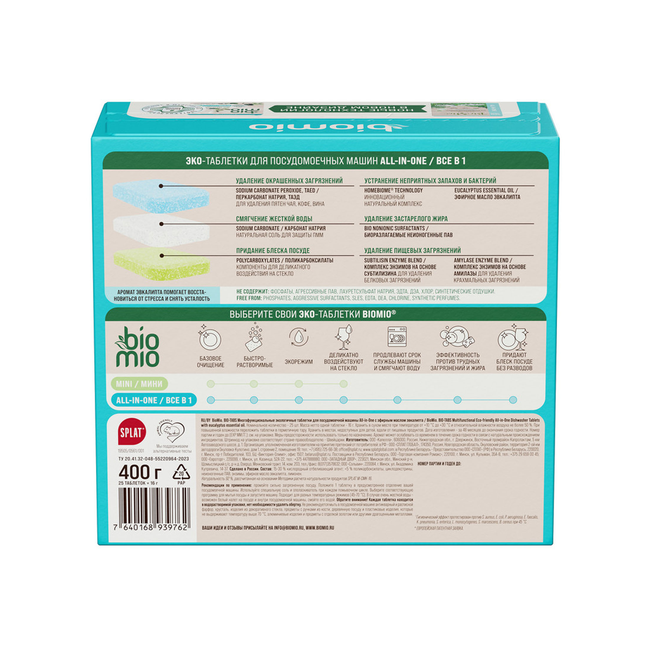 Bio-Mio All-in-one таблетки д/ПММ эко,многофункц. (25шт*16г) п/стойк.жирн.загряз. эвкалипт карт./уп / 16шт / 510.124090.0101 / 939762