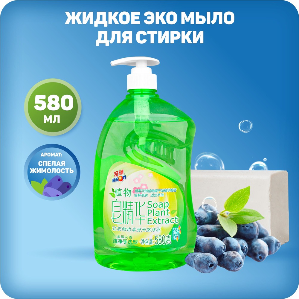 Мыло жидкое для стирки на натуральной основе KEON аромат Жимолость 580гр. - это экологически безопасное средство для стирки. Смягчает и глубоко очищает ткани при ручной стирке. Используется для тканей следующих видов: хлопок, лен, синтетика, вискоза, холлофайбер. Заменяет 10 кусков обычного мыла для стирки.