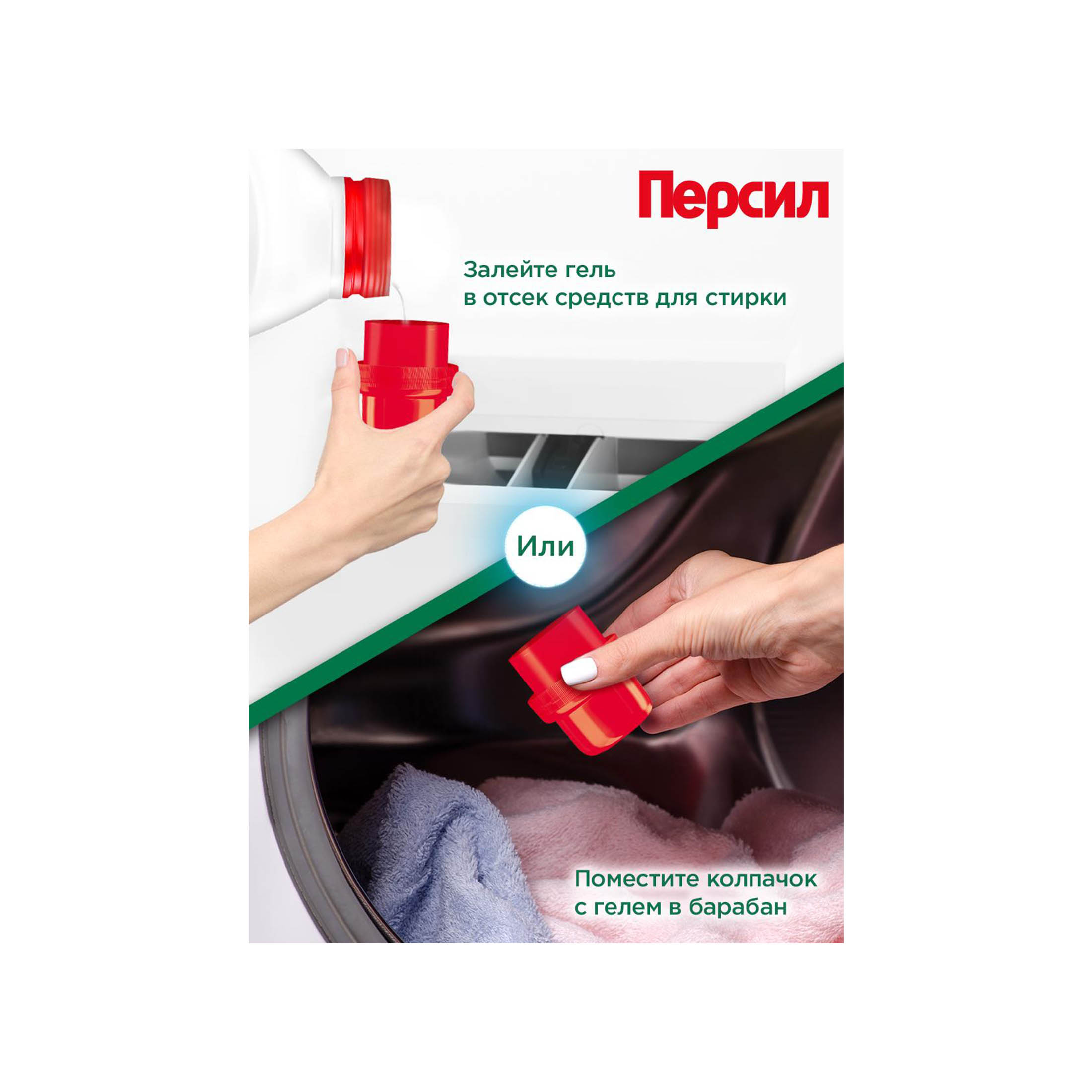 Используйте крышку для отмеривания дозы: поместите крышку со средством непосредственно в барабан стиральной машины. Если крышка не используется, залейте средство в лоток для моющего средства. Для удаления трудно выводимых пятен нанесите гель непосредственно на пятно перед стиркой. При выборе цикла и температуры стирки ориентируйтесь на рекомендации, указанные на ярлыках изделий. Стирайте белые и цветные вещи отдельно. При ручной стирке используйте защитные перчатки для рук.