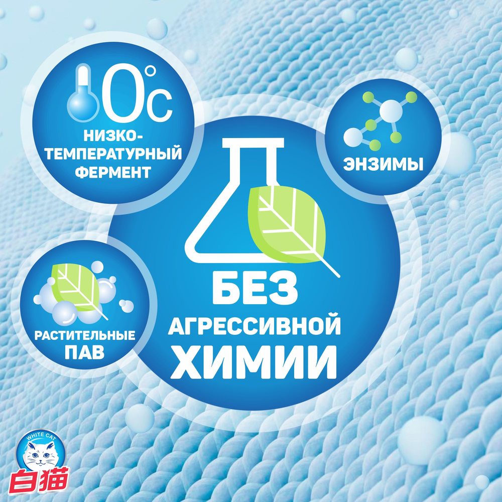 - Хорошо выводит грязь с тканей, справляется с пятнами благодаря чистящим энзимам.
