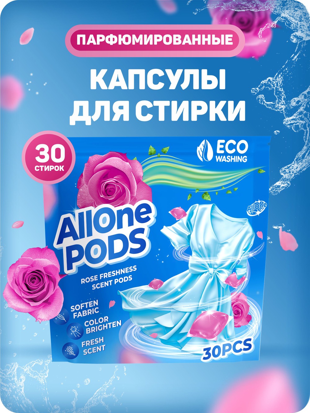 Парфюмированные капсулы для стирки Allone - это удобное и эффективное средство для получения идеальной чистоты и свежести вашего белья. Каждая капсула содержит комплекс мощных активных ингредиентов, одной капсулы хватает на одну стирку. Капсулы отлично справляются с самыми сильными загрязнениями, не оставляют разводов, а также устраняют неприятные запахи. Обладают антибактериальным действием, быстро растворяются в воде. Парфюмированные капсулы Allone обладают приятным ароматом розы, который будет радовать вас после каждой стирки.