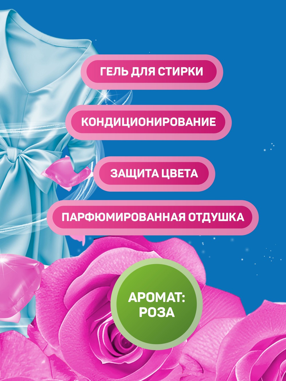 Простота использования: не нужно отмерять и наливать, просто добавьте капсулу в барабан стиральной машины до загрузки белья. Подходит для стирки всех типов ткани, кроме шёлка и шерсти.