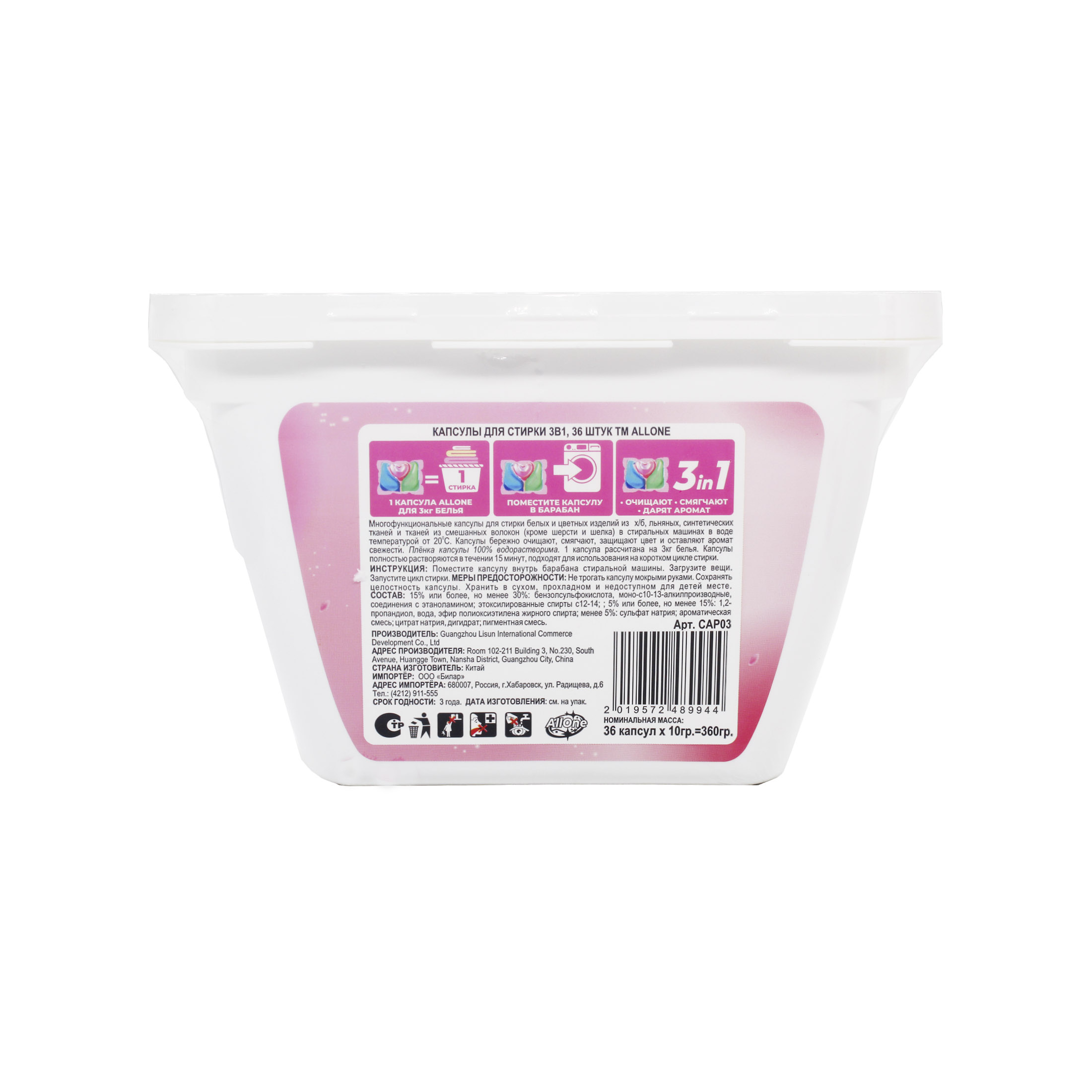 Allone капсулы д/стирки (36шт) 3в1 многофункц. д/в тип.бел. цветоч. пл/банка / 36шт / CAP03 / 489944