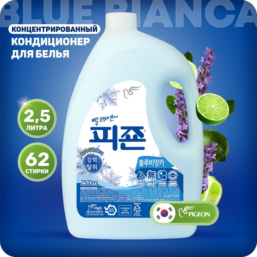 Кондиционер для белья Pigeon Морозная свежесть придаст белью нежный, мягкий аромат. Смягчающий кондиционер предназначен для стирки одежды из хлопка, льна, шерсти, смешанных и синтетических тканей в машинах активаторного и барабанного типов. Разглаживает складки, невероятно смягчает, снимает статическое напряжение, а также облегчает процесс глаженья. Не содержит парабенов, фенксиэтанола, бензоата натрия, бензалкониум хлорида, тетрахлорэтилена.