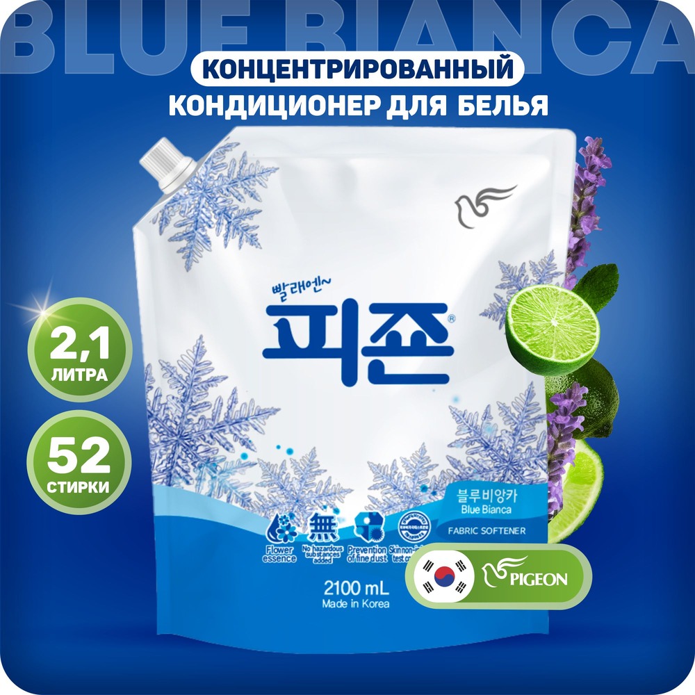 Кондиционер для белья Pigeon Морозная свежесть придаст белью нежный, мягкий аромат. Смягчающий кондиционер предназначен для стирки одежды из хлопка, льна, шерсти, смешанных и синтетических тканей в машинах активаторного и барабанного типов. Разглаживает складки, невероятно смягчает, снимает статическое напряжение, а также облегчает процесс глаженья. Не содержит парабенов, фенксиэтанола, бензоата натрия, бензалкониум хлорида, тетрахлорэтилена.