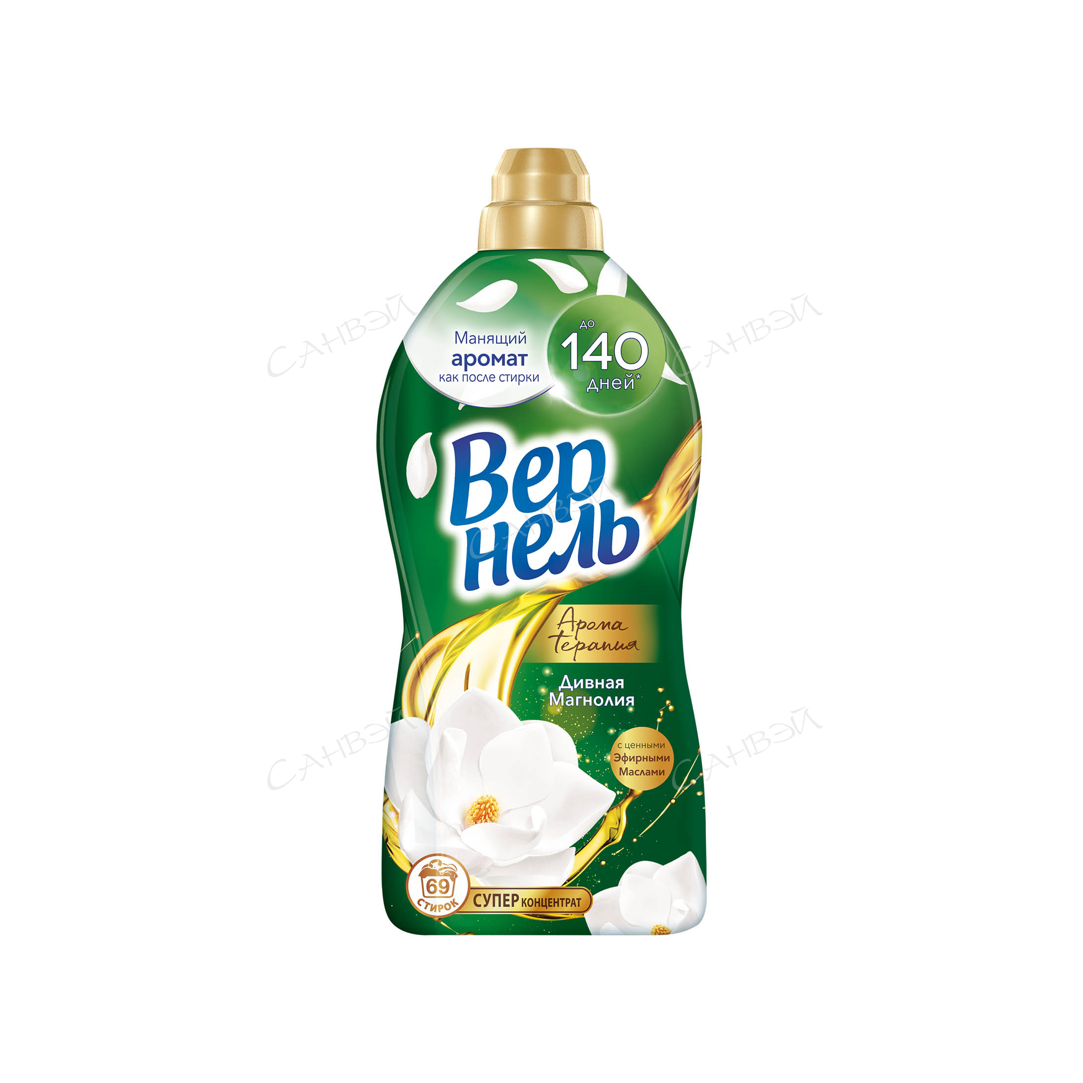 Концентрированный кондиционер для белья Вернель Ароматерапия Дивная магнолия 1740 мл (69 стирок) из Санвэй подарит Вашему белью волшебный аромат лотоса, а благодаря специальным аромакапсулам в составе кондиционер для стирки Вернель позволит наслаждаться интенсивным ароматом белья до 140 дней.