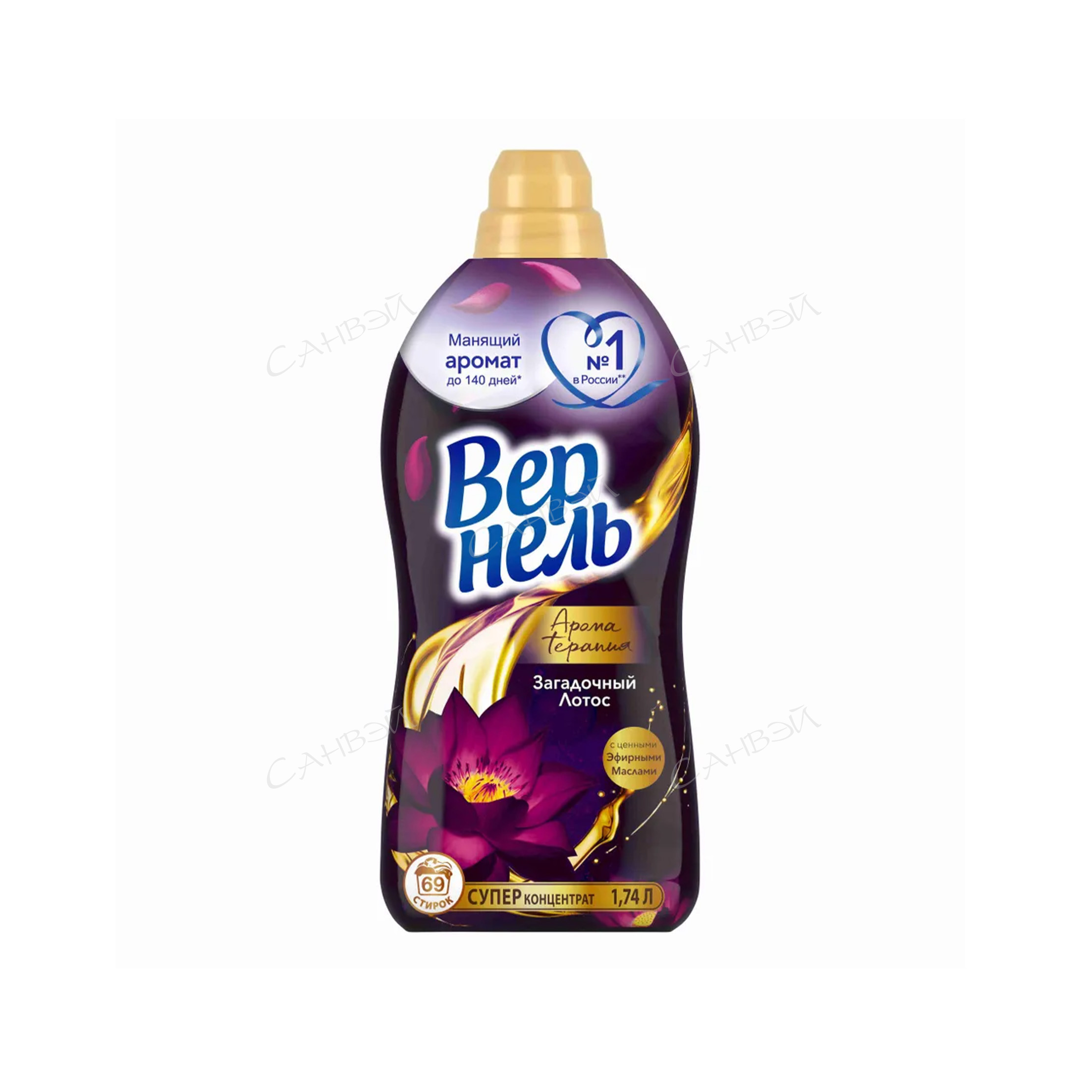 Концентрированный кондиционер для белья Вернель Ароматерапия Загадочный лотос 1740 мл (69 стирок) из Санвэй подарит Вашему белью не только невероятную мягкость, но и магический аромат лотоса, а благодаря специальным аромакапсулам в составе кондиционер для стирки Вернель позволит наслаждаться интенсивным ароматом белья до 140 дней.