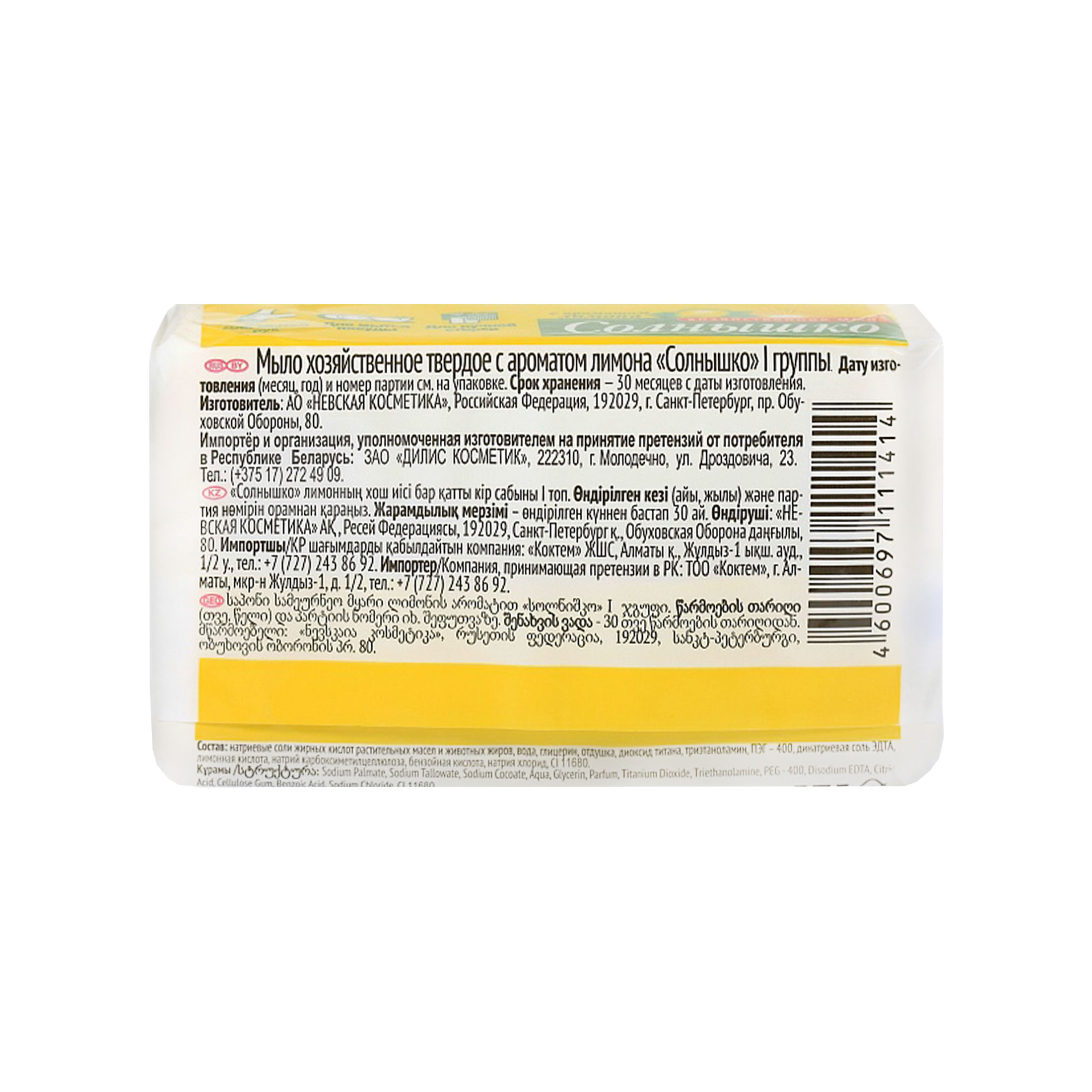 Солнышко мыло д/стирки хоз. 1шт 140гр. инд.уп. лимон / 48шт / 11141 / 111414