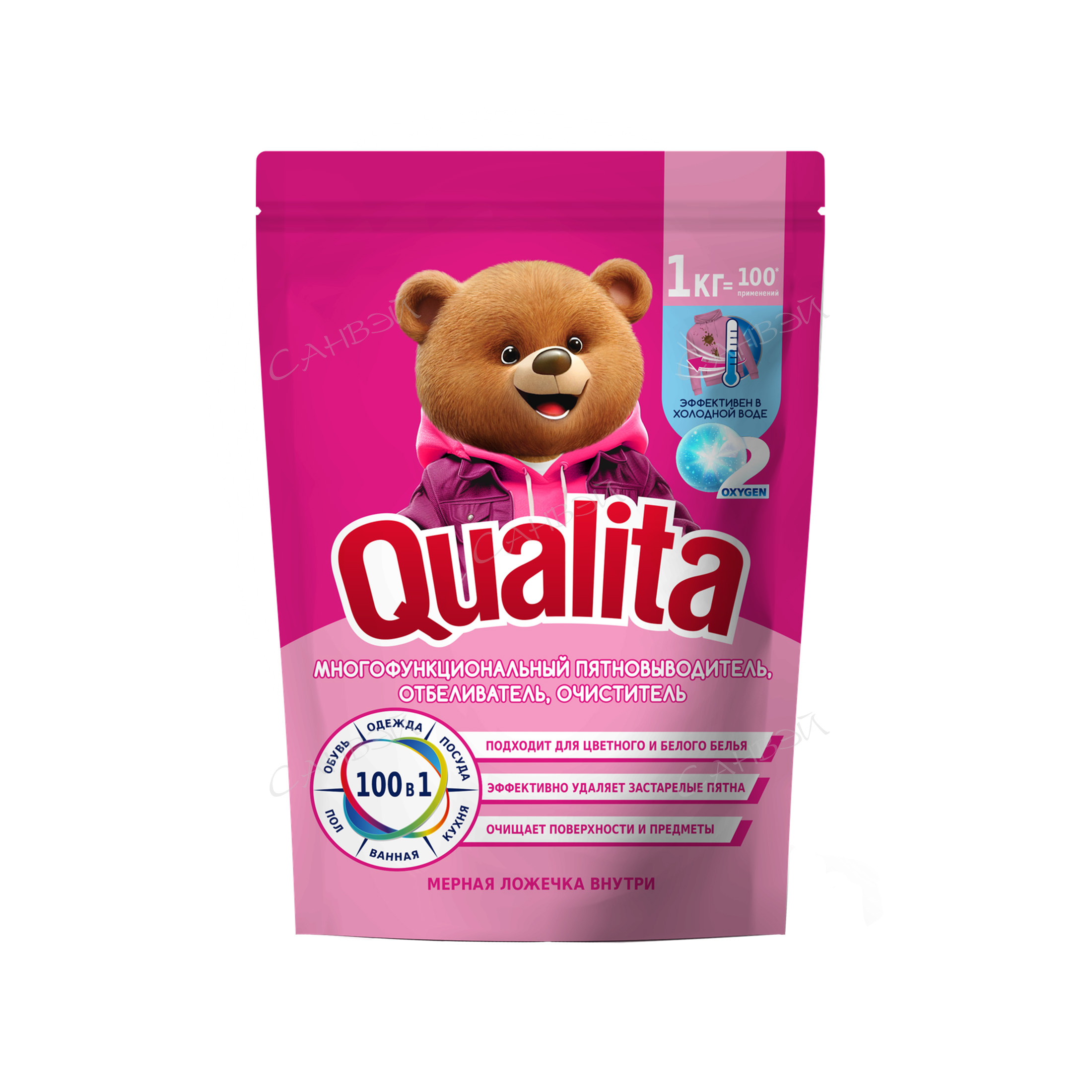 NEW! Qualita пятновыводитель 1л отбелив.,многофункц. д/бел.и цветн.б. дой-пак / шт / 14810 / 063350