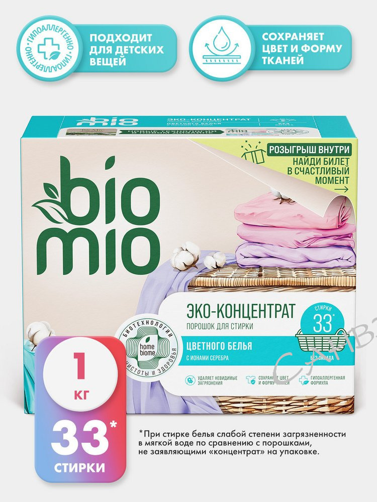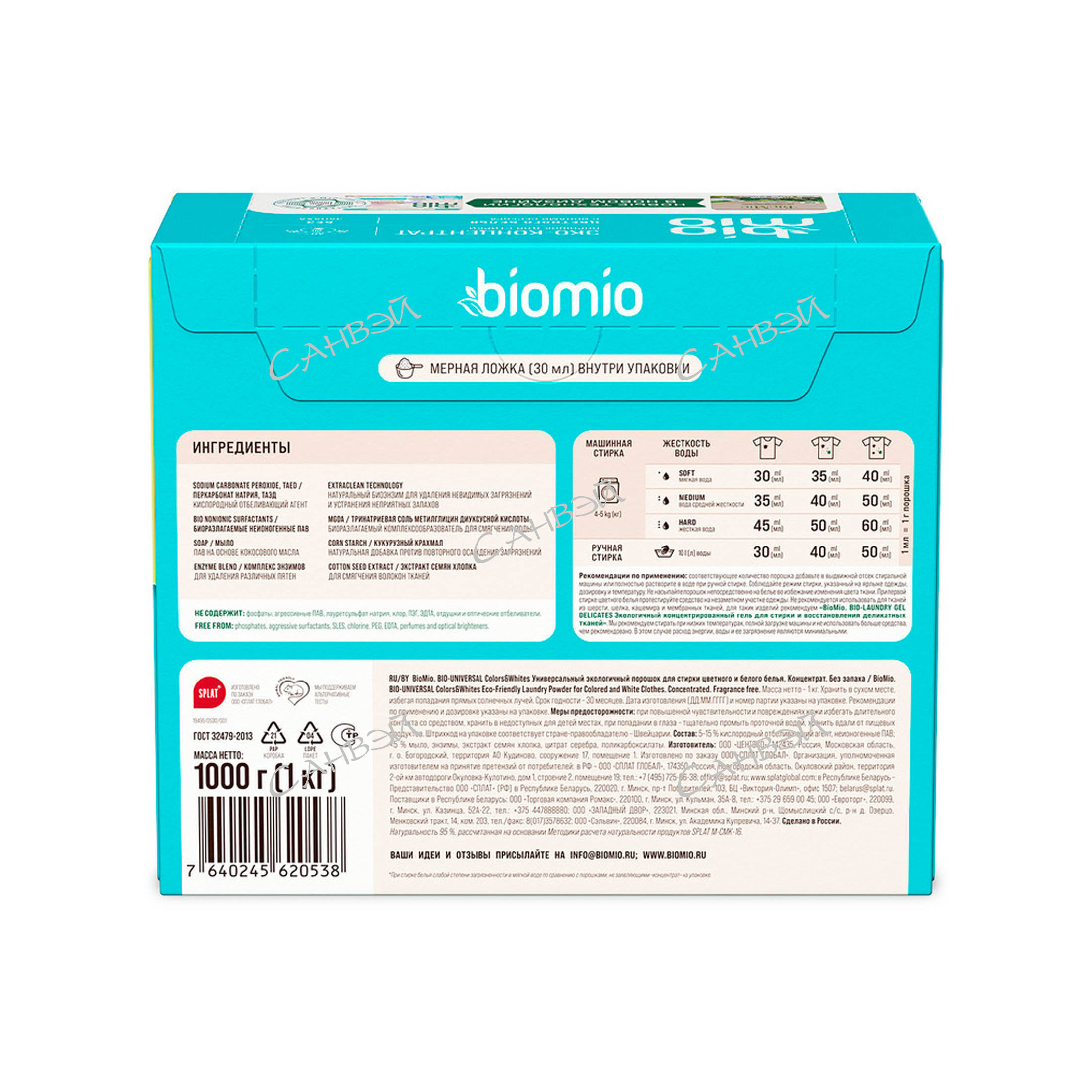 Bio-Mio Bio-Universal Эко порошок д/стирки 1 кг конц.,универс. д/бел.и цветн.б. б/запаха карт/уп / 6шт / 544.142434.0101 / 620538