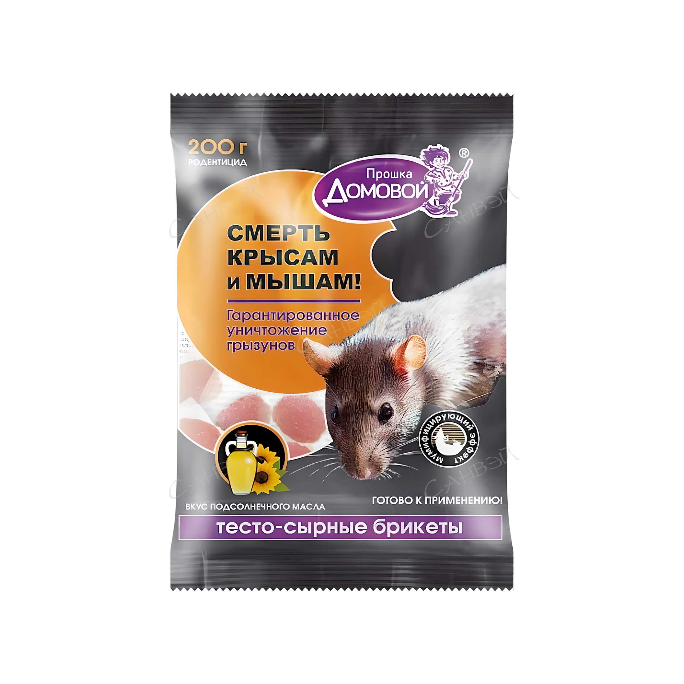 Домовой Прошка брикет от грызунов подсолнеч.масло тесто-сырный 200 гр. 1 шт / 24шт / Г104 / 241245