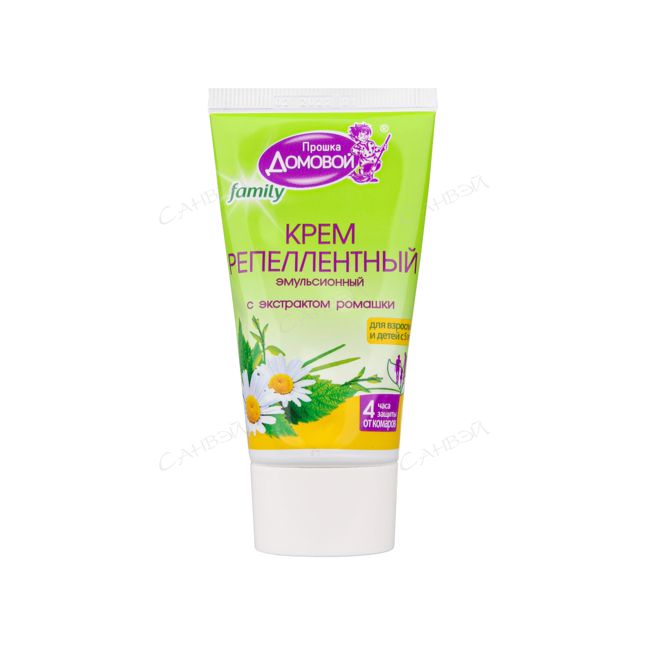 Домовой Прошка Крем от комаров БИО Family 50 г для защиты взрослых и детей с 5 лет от нападений кровососущих насекомых. Высокоэффективное действующее вещество. Наличие экстрактов трав в креме благотворно влияет на кожу. Время защитного действия не менее 3-х часов.