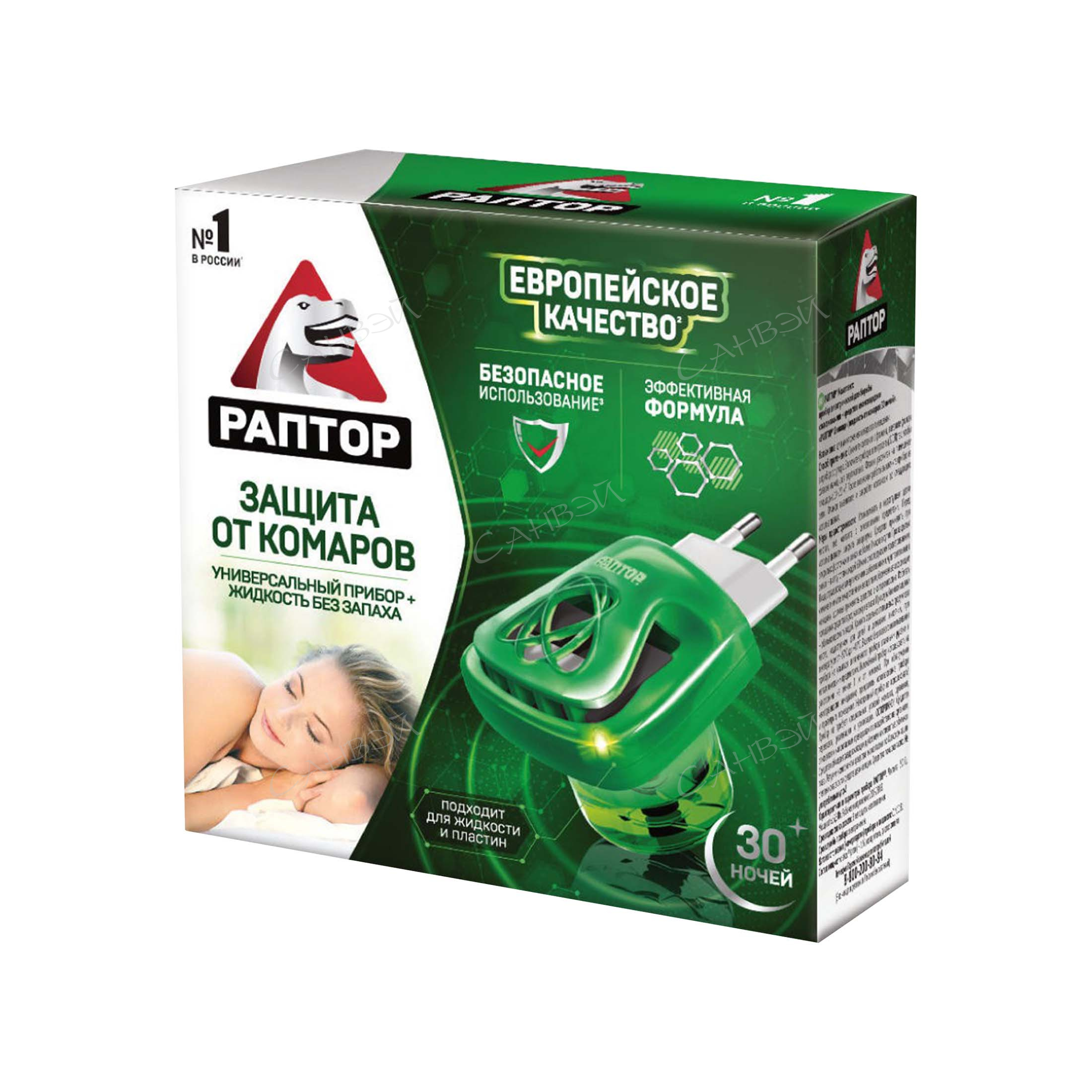 Комплект для защиты от комаров Раптор включает универсальный прибор (электрофумигатор) и жидкость без запаха. Прибор работает как с пластинами, так и с жидкостями Раптор. Поворотная вилка. Световой индикатор работы прибора. Жидкость обеспечивает эффективную защиту от комаров в течение месяца. В состав жидкости входит высокоэффективное японское вещество etoc (эток).