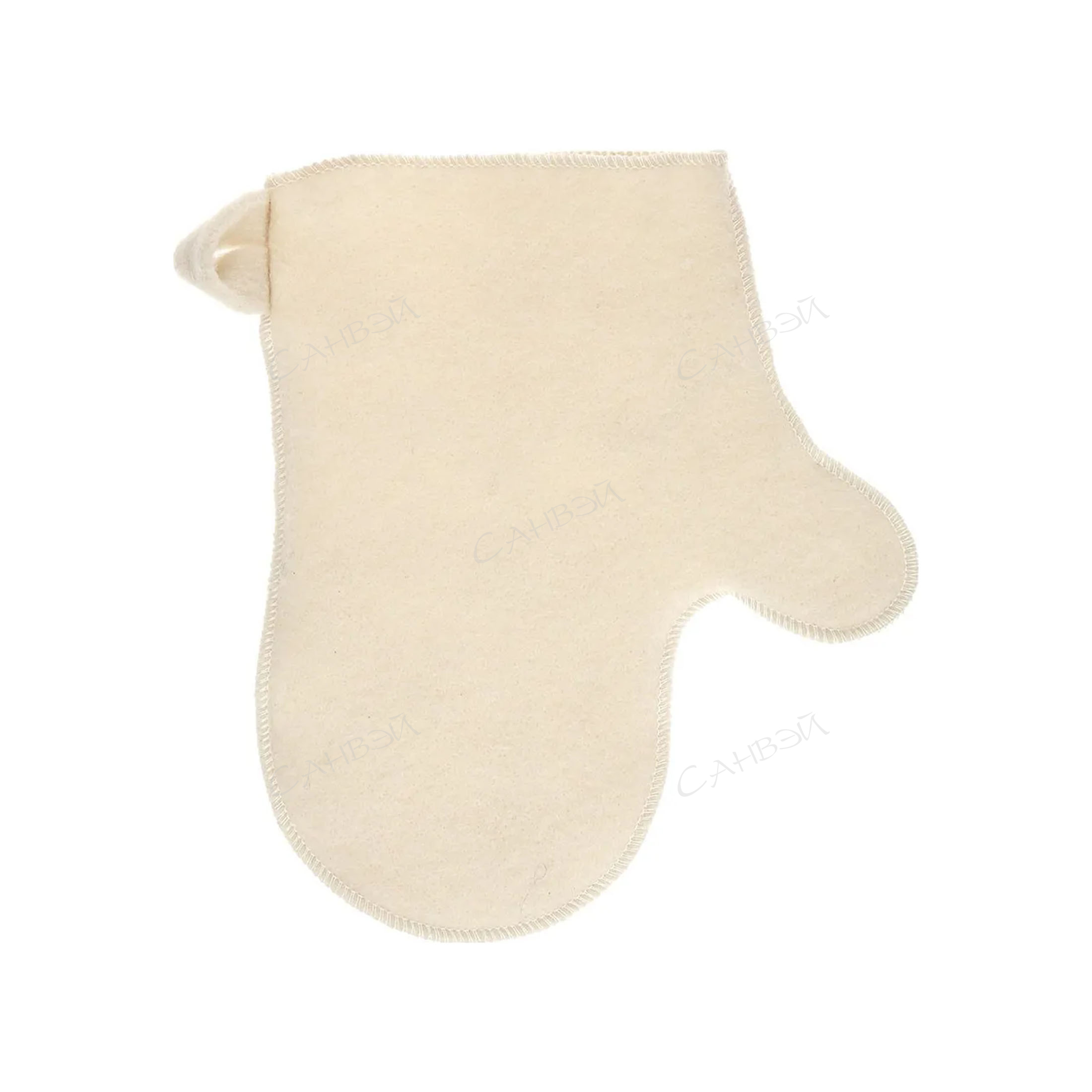 Рукавица д/бани и сауны войлок Бацькина Баня белый 20,7*26,8*1,7см п/э пакет 1 шт / 25шт / 12001 / 241048