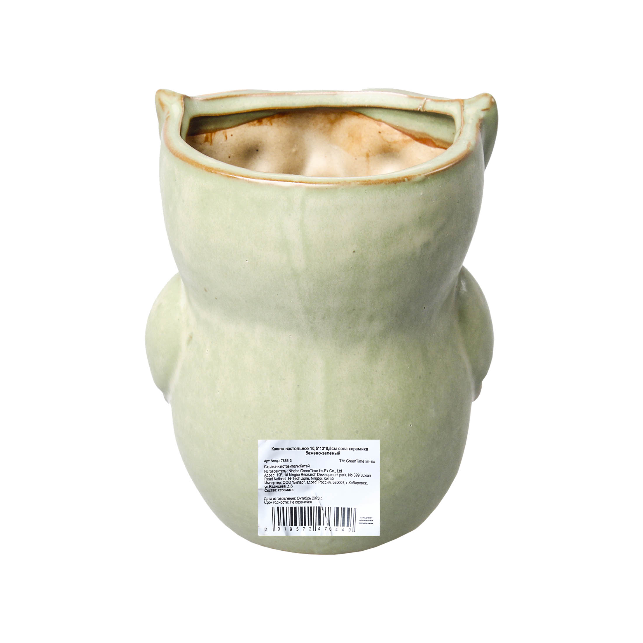 DVL Кашпо настольное 10,5*13*8,5см сова керамика бежево-зелен. GT 1 шт / 60шт / 7866-3 / 476449