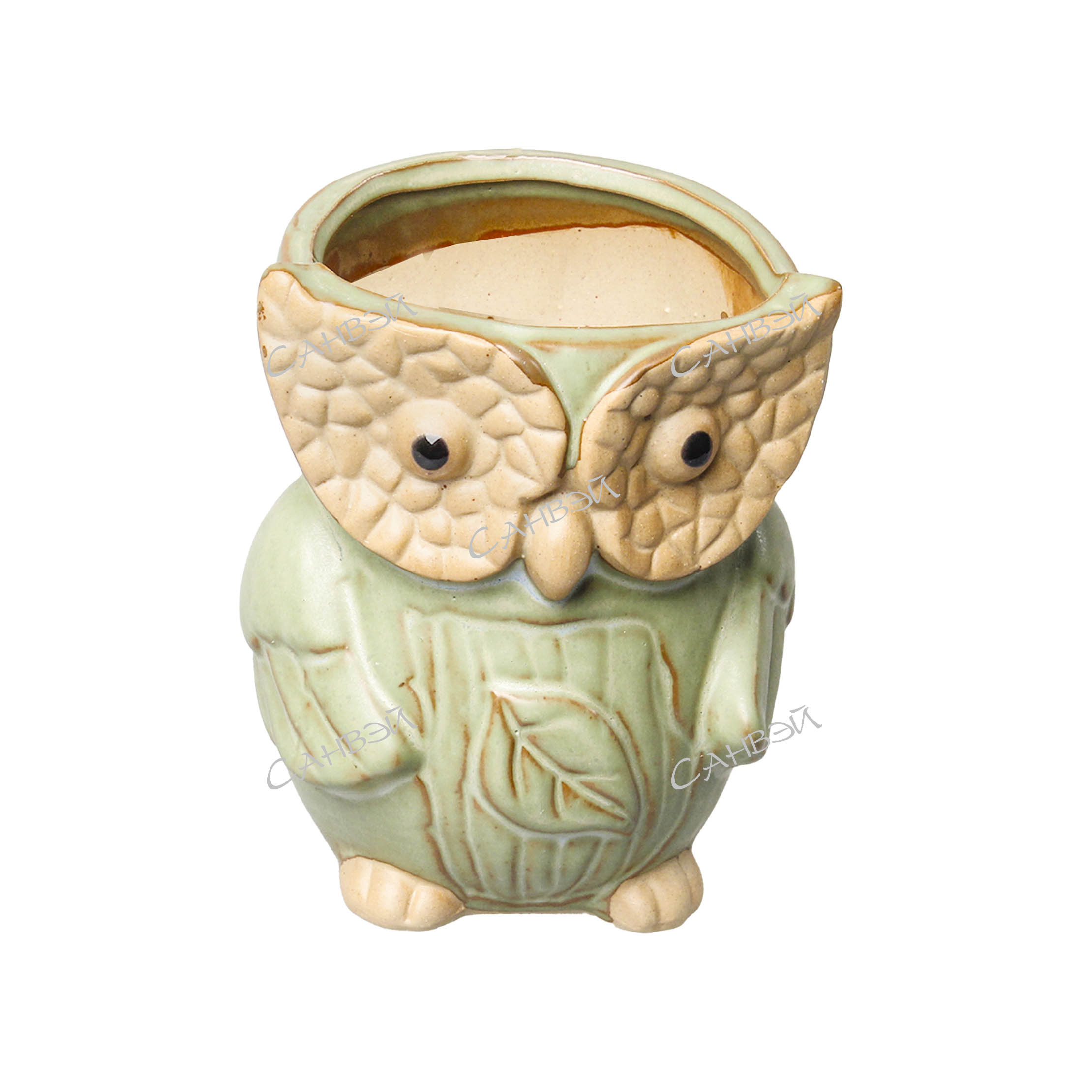 Настольное кашпо из керамики Сова бежево-зеленое 10,5x13x8,5 см - подойдёт как для живых, так и для искусственных растений или засушенных цветов и гармонично впишется в ансамбль с ампельными растениями. Можно расположить его на столе и создать оригинальную композицию. Гладкая глянцевая поверхность кашпо дополнит интерьер. Разнообразие ярких цветов и зелени оживит ваш дом или офис, привнеся стиль и уют, добавит элегантности любому пространству. Это кашпо для домашних растений станет отличным подарком и декором для любого пространства.