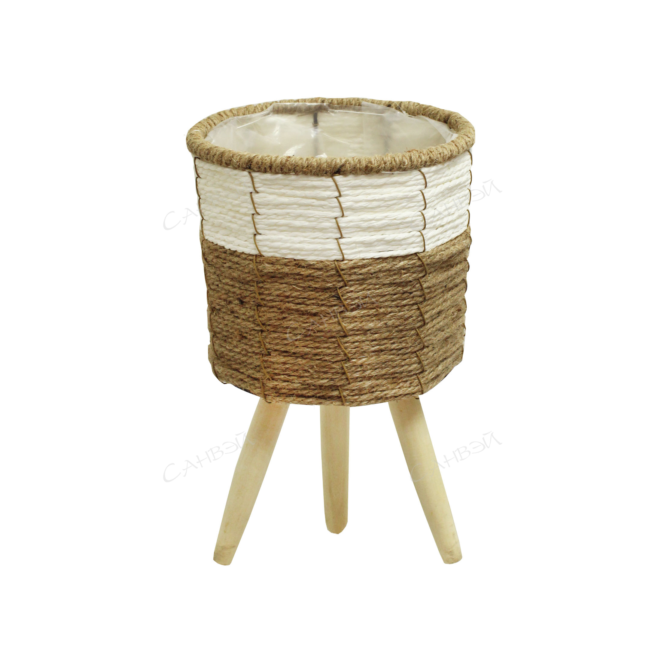 MU Кашпо напольное на ножках 21*21*34см прямоуг. пластик,джут бежевый GT 1 шт / 60шт / JZ20523-032S / 815051