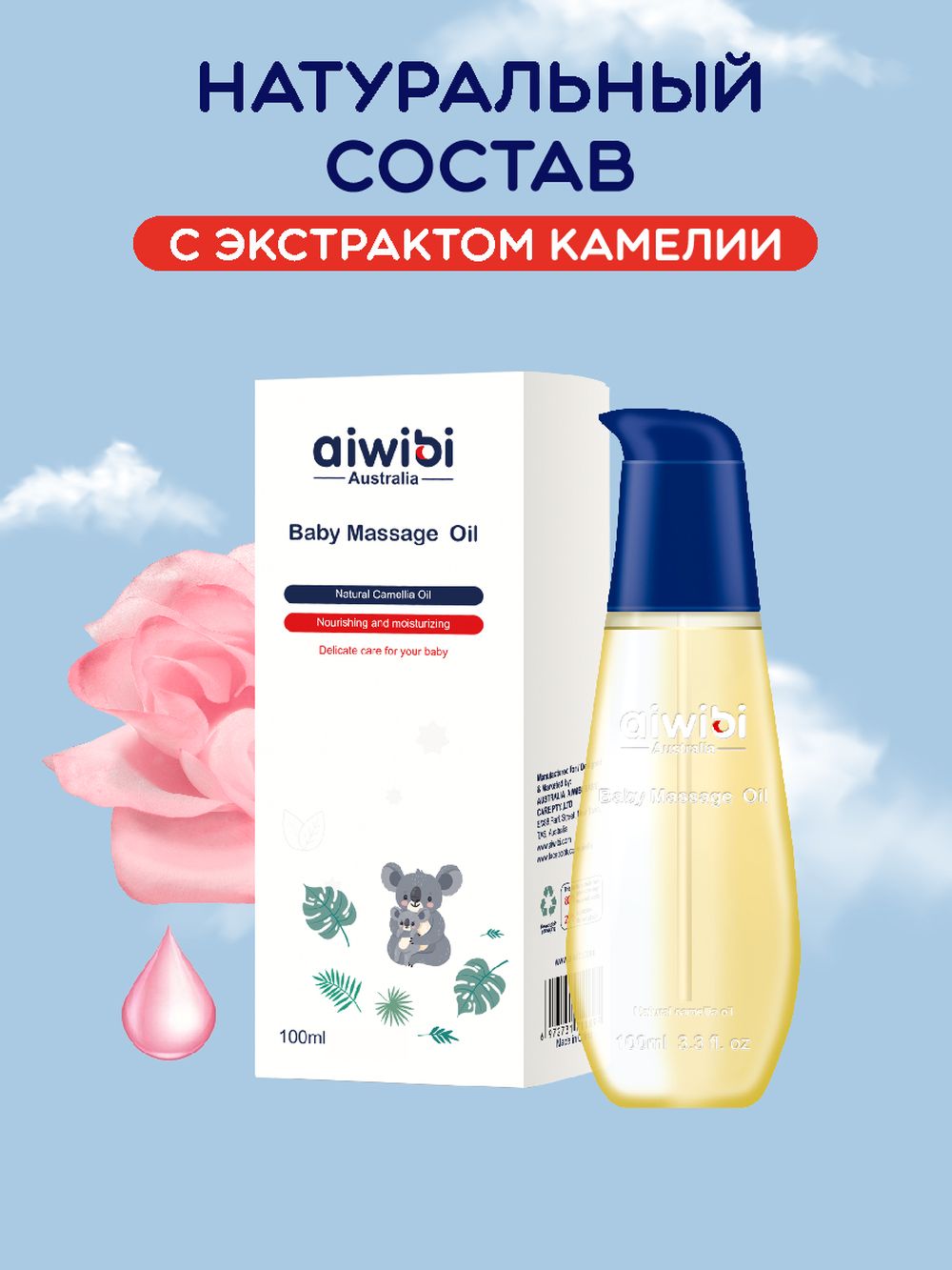 Aiwibi Массажное масло для тела детское Увлажняющее Камелия 100 мл расслабляет вашего малыша и помогает ему заснуть заснуть.