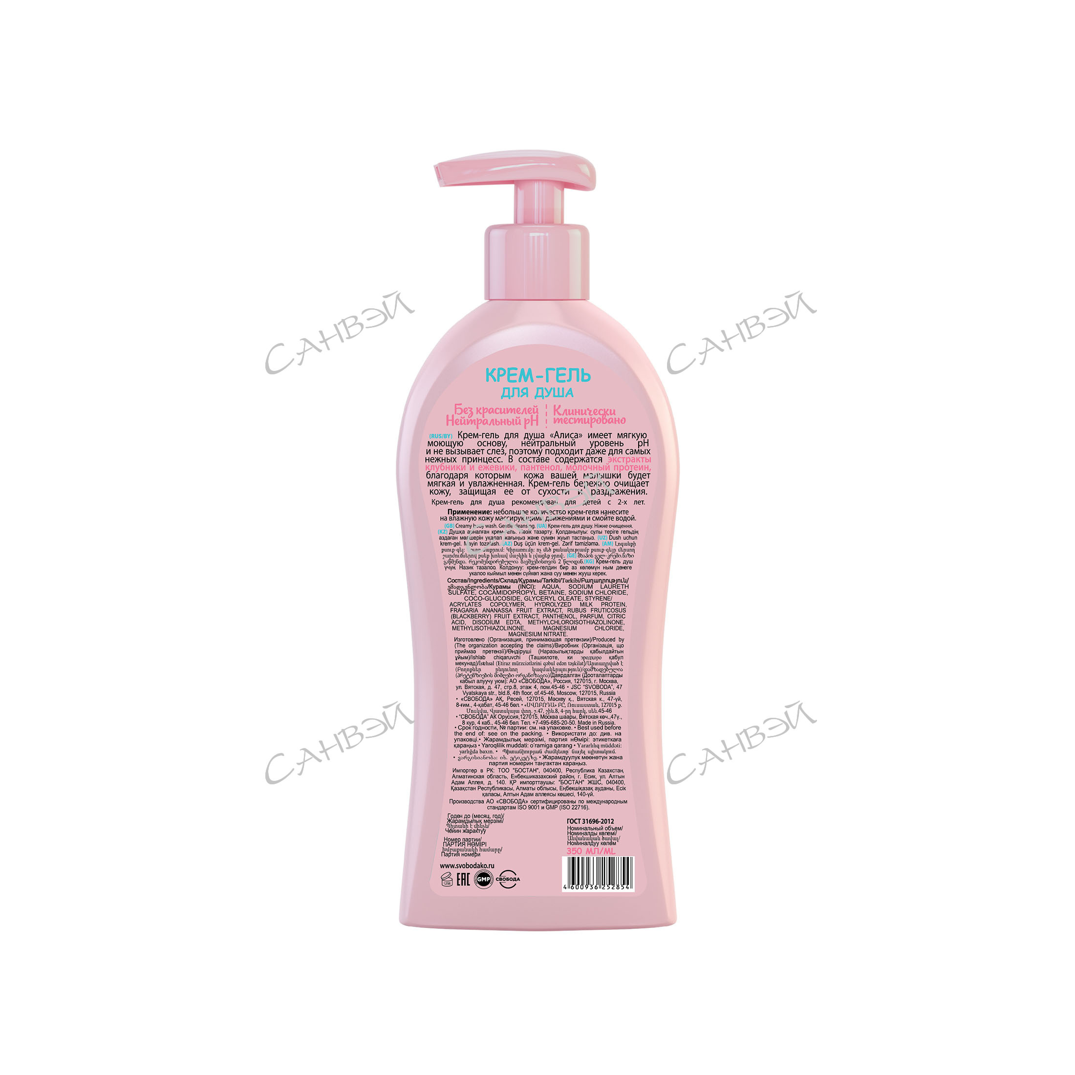 Крем-гель для душа Алиса имеет мягкую моющую основу, нейтральный уровень рH и не вызывает слез, поэтому подходит даже для самых нежных принцесс. В составе содержатся экстракты клубники и ежевики, пантенол, молочный протеин, благодаря которым кожа вашей малышки будет мягкая и увлажненная. Крем-гель бережно очищает кожу, защищая ее от сухости и раздражения.
